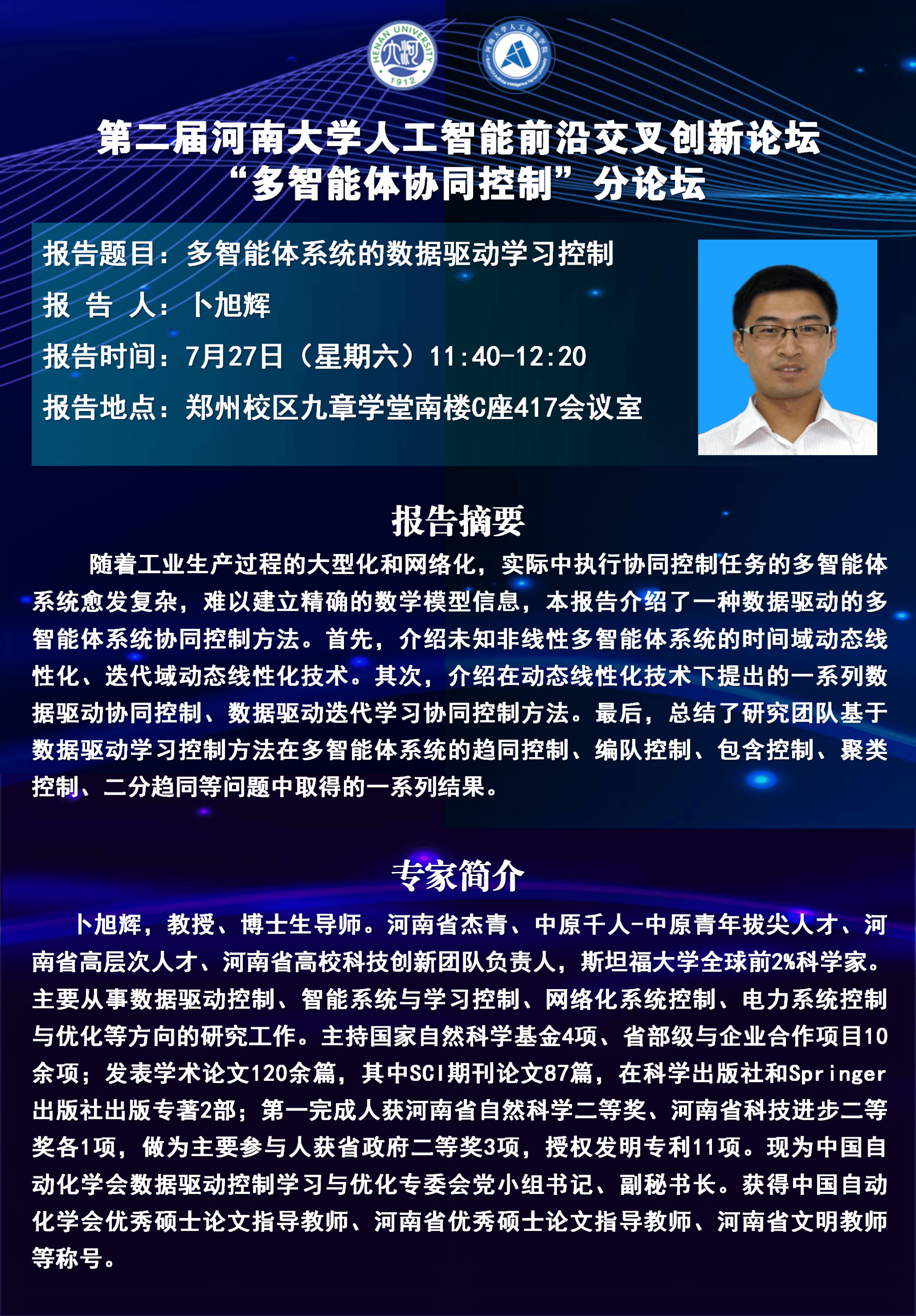 卜旭辉:多智能体系统的数据驱动学习控制(时间:7月27日)