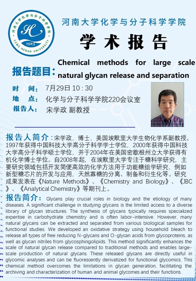 宋学政: Chemical methods for large scale natural glycan release and separation(时间:7月29日)