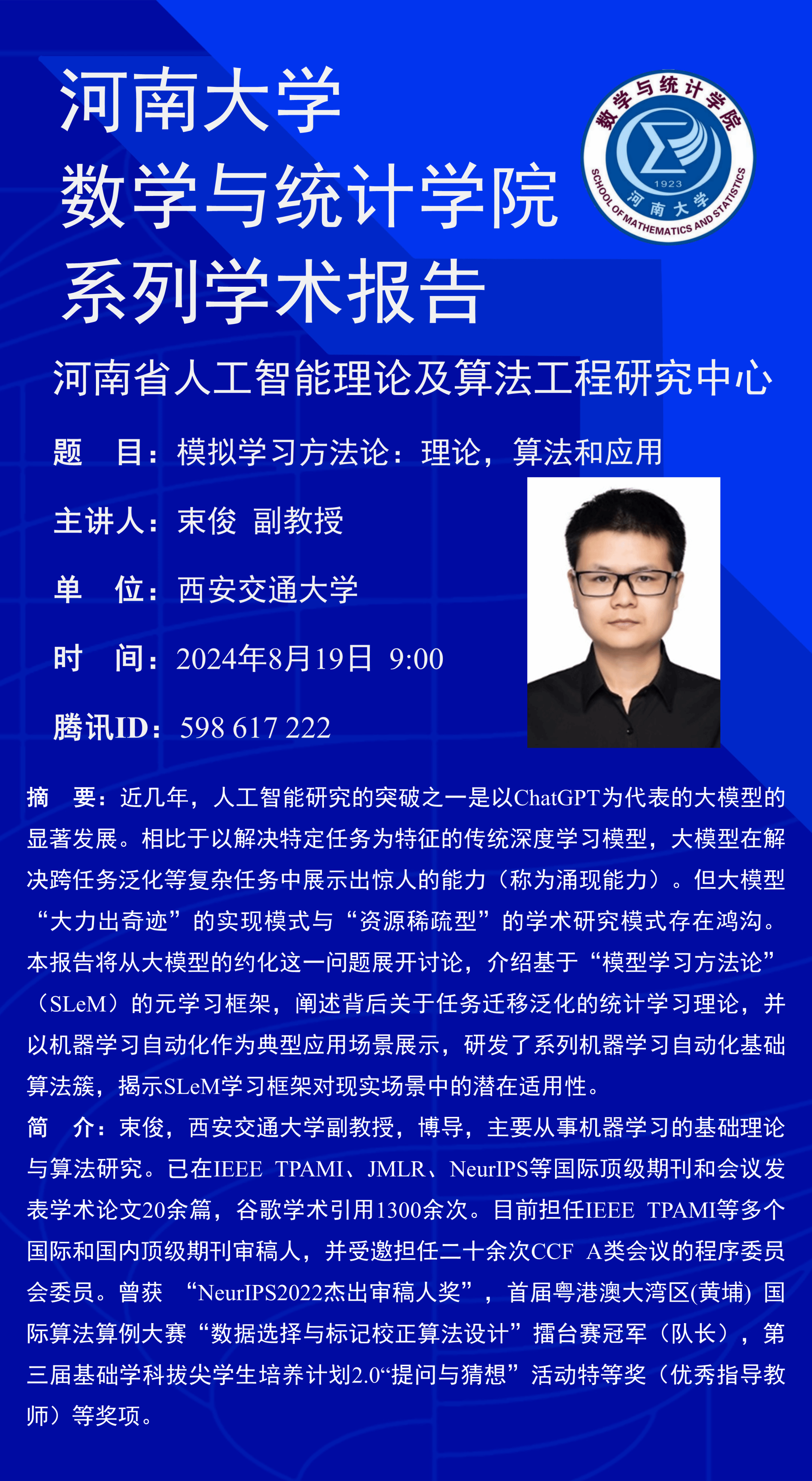 束俊:模拟学习方法论:理论,算法和应用(时间:8月19日)