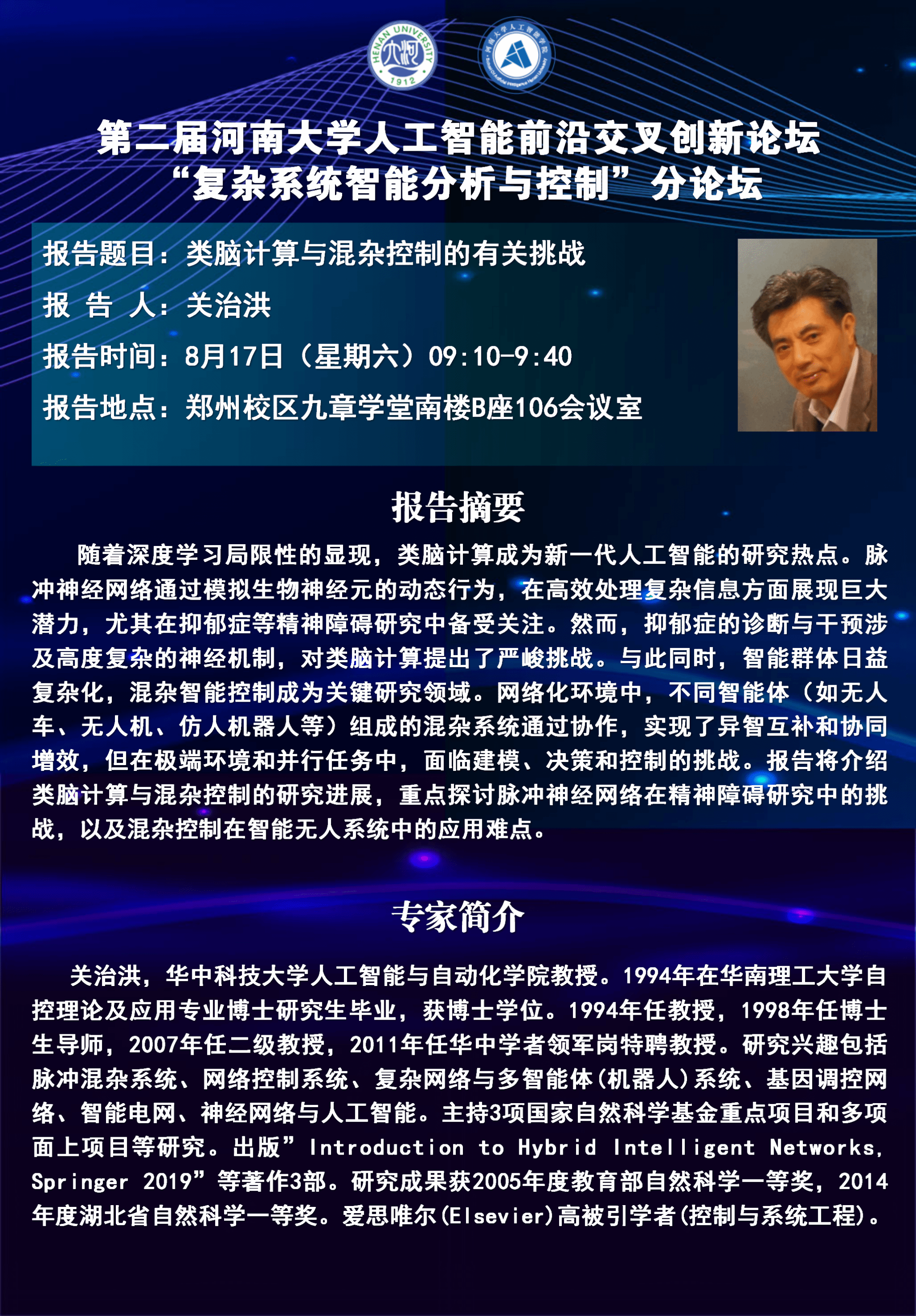 关治洪:类脑计算与混杂控制的有关挑战(时间:8月17日)