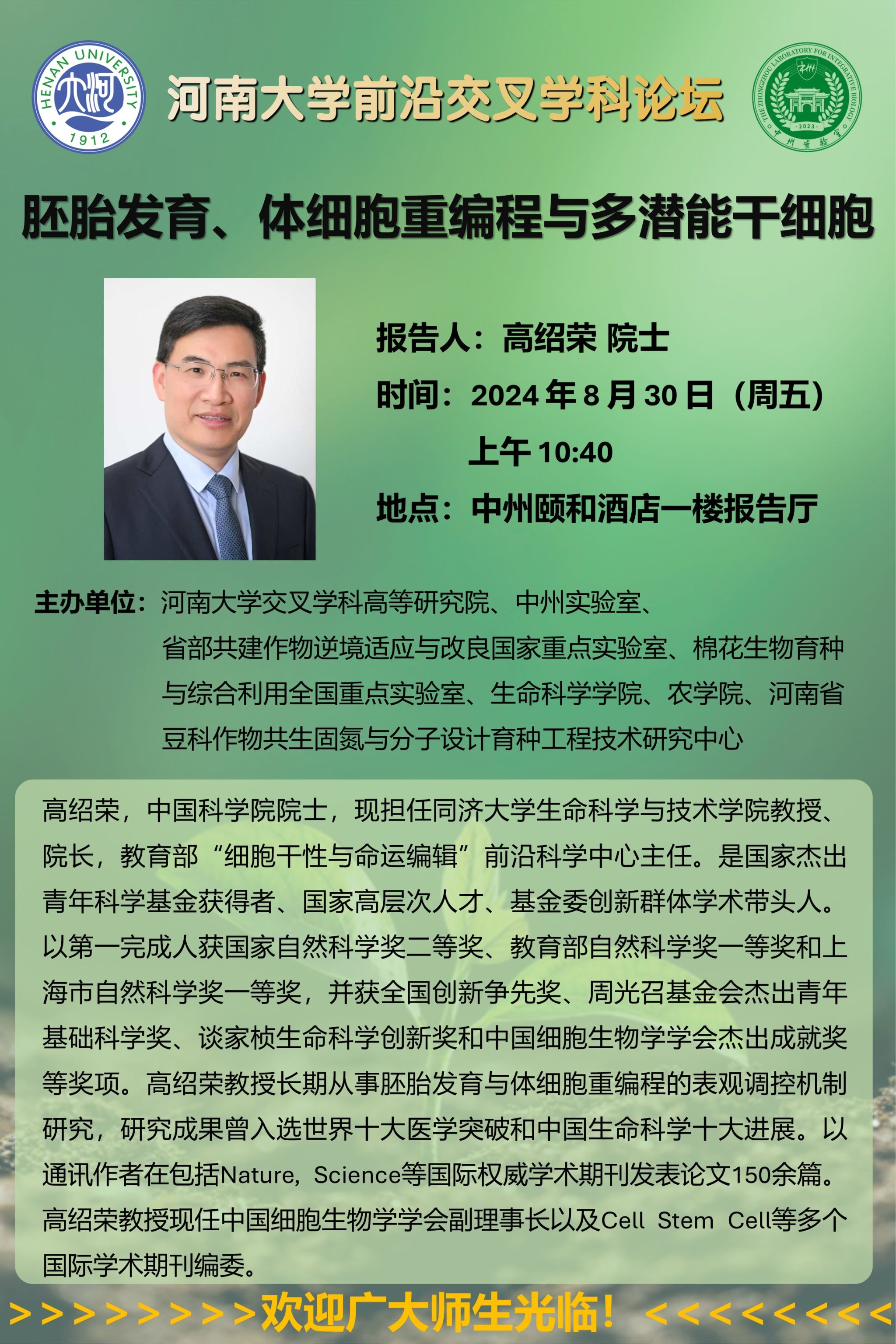 高绍荣:胚胎发育、体细胞重编程与多潜能干细胞(时间:8月30日)