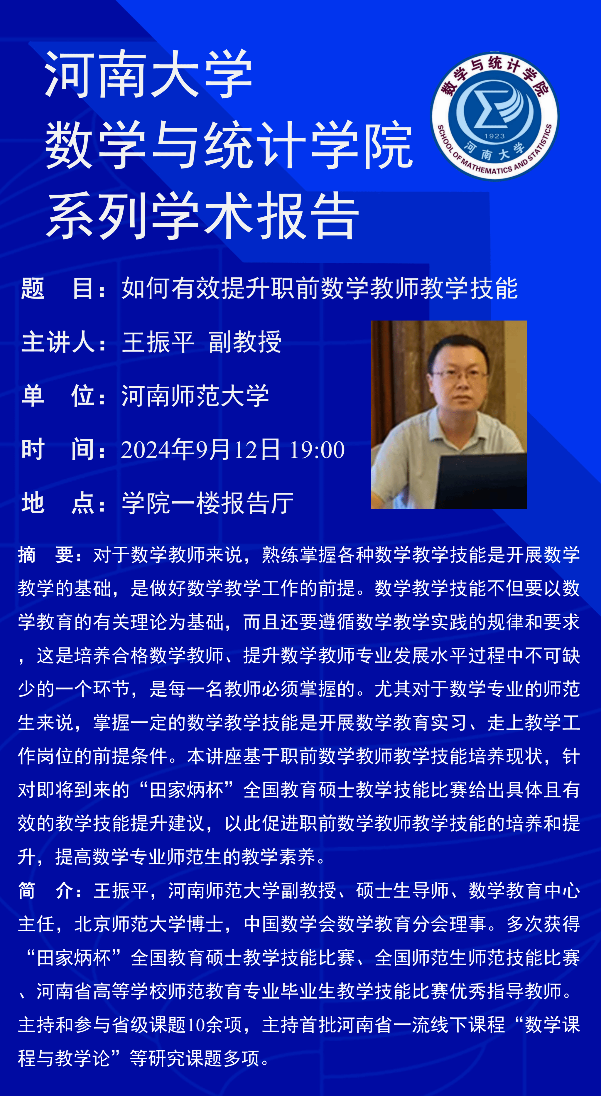 王振平:如何有效提升职前数学教师教学技能 (时间:9月12日)