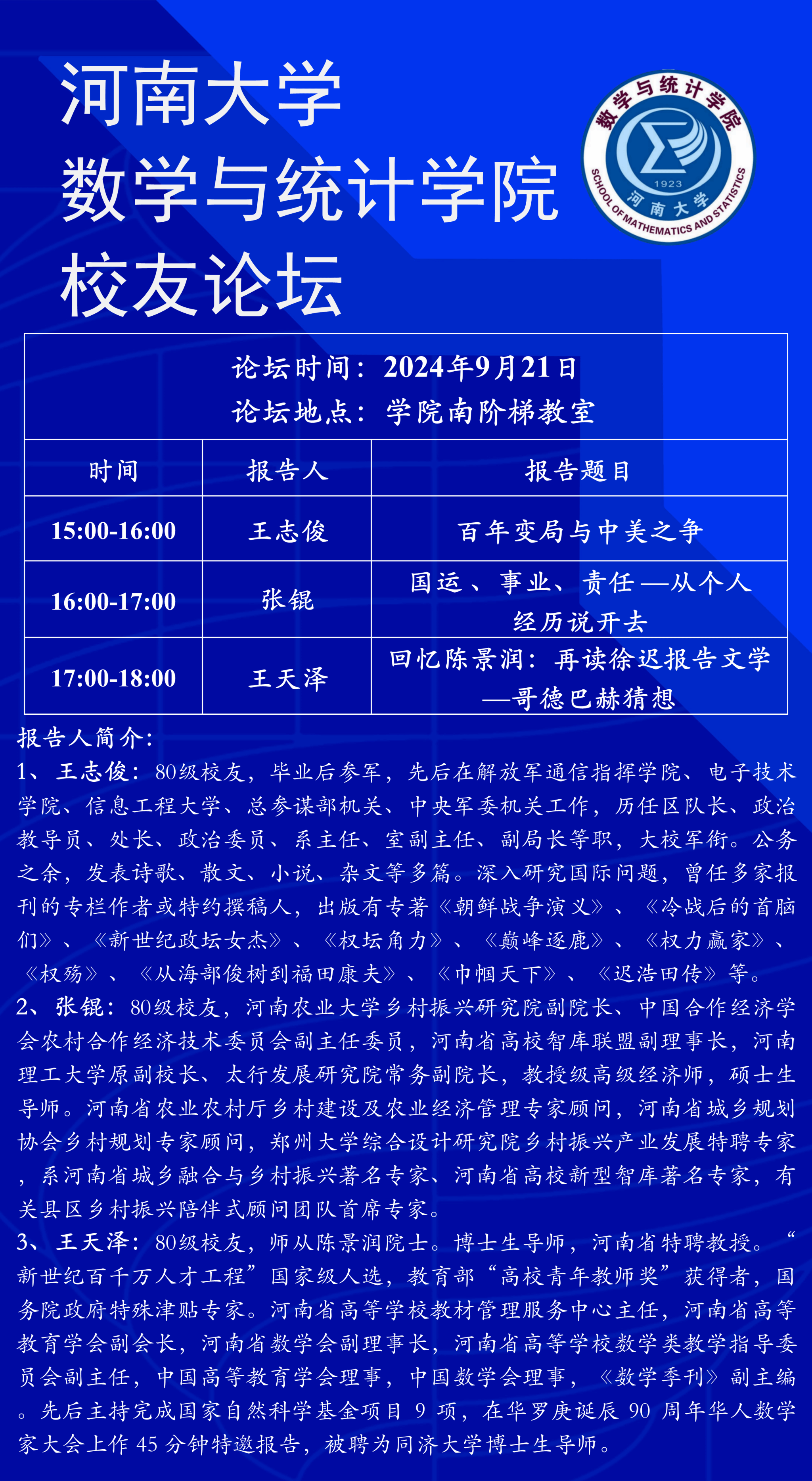 2024年yl7703永利官网数学校友论坛(时间:9月21日)
