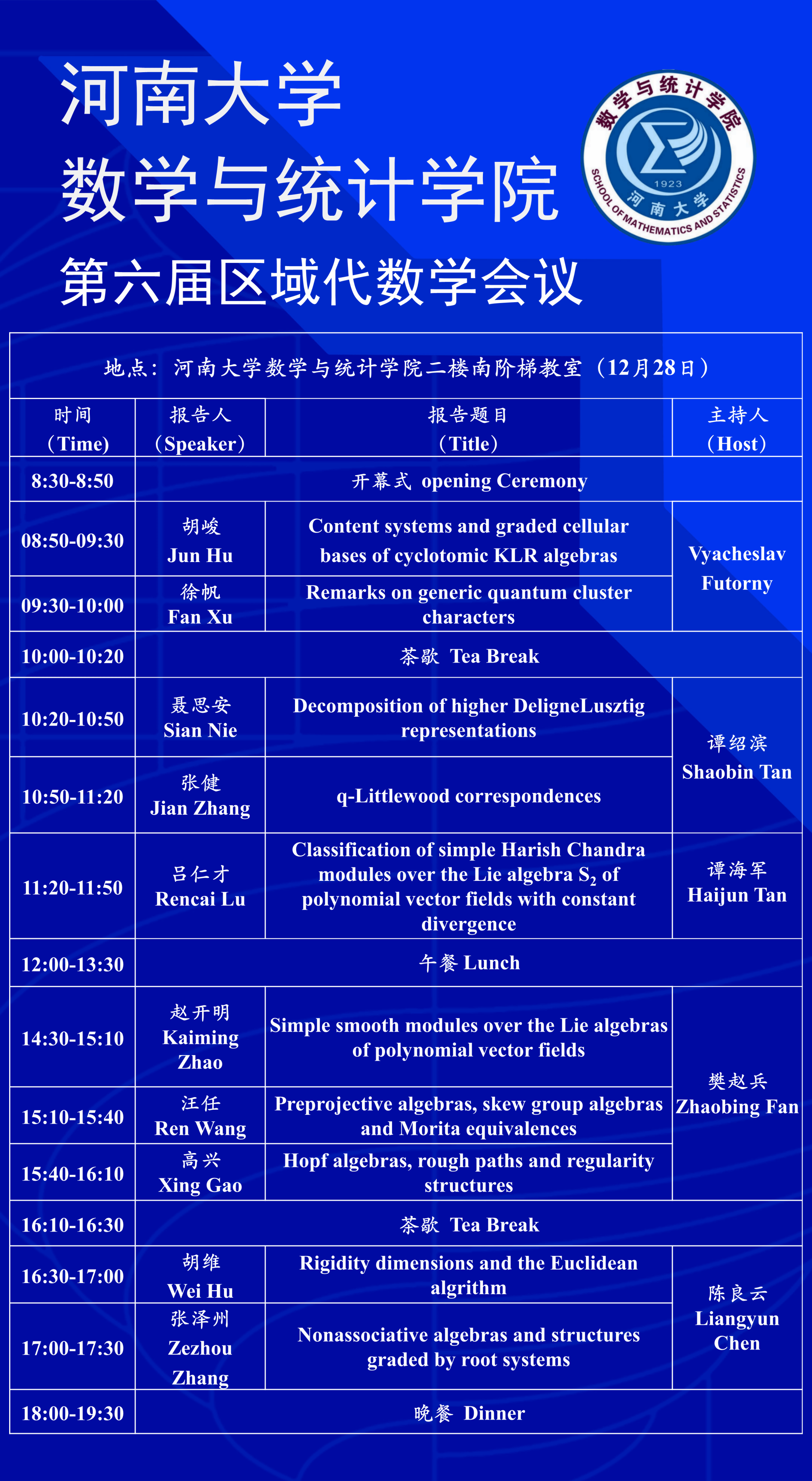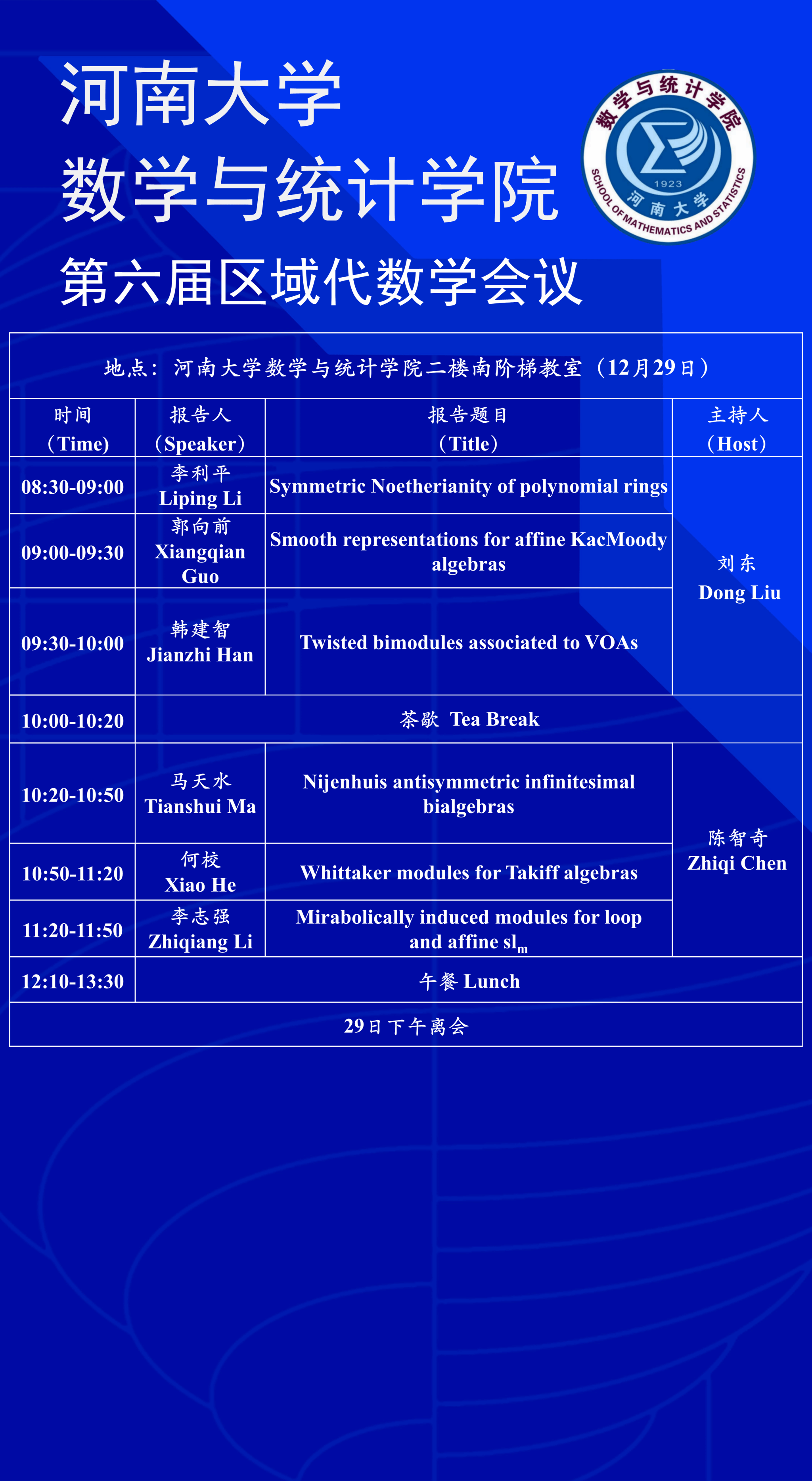第六届区域代数学会议(时间:12月27日-29日)