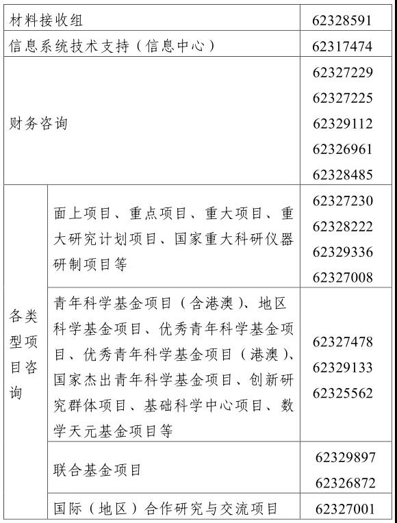 (一) 基金委各类事项咨询电话。