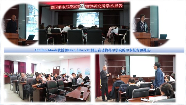 2018年11月9日上午,德国莱布尼茨家畜生物学研究所Steffen Maak教授和Elke Albrecht博士应杨润军教授邀请,在米乐mile官方网站做了题为“Introduction to the Leibniz Institute for Farm Animal Biology”和“Identification of signals influencing muscle composition and function”的学术报告和讲座,报告会由学院副院长张明军教授主持,赵志辉教授、郝琳琳教授、房希碧博士等教师,动物遗传育种与繁殖专业研究生及2016级动物科学卓越农林人才试验班同学参加了报告会。