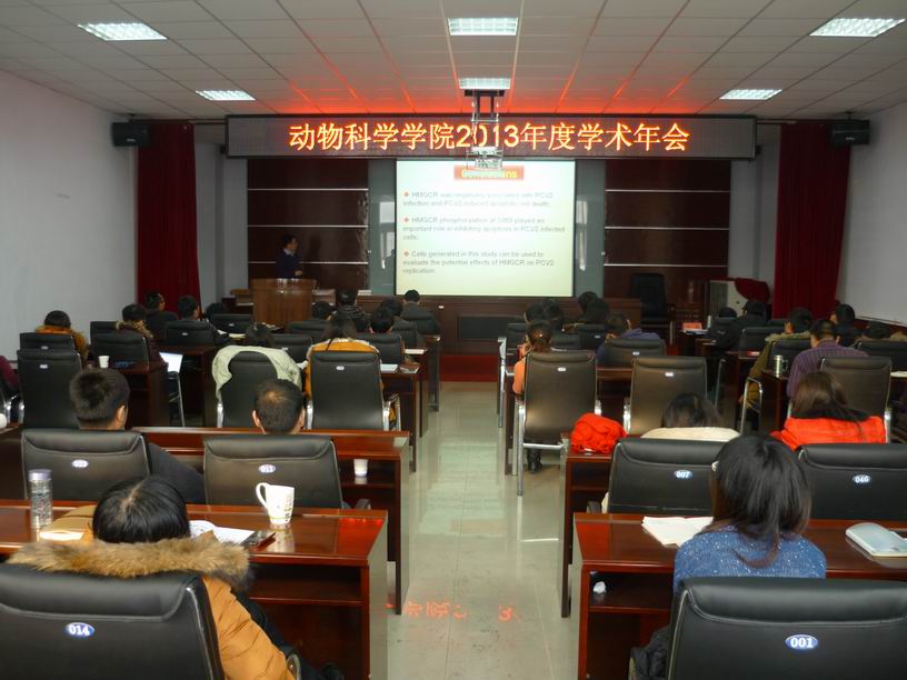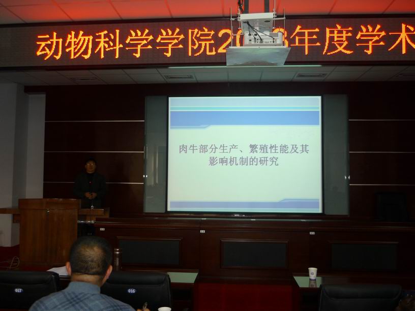 本届年会由教授论坛和青年教师(研究生)学术报告两部分内容组成。张嘉保、赵志辉、欧阳红生、任文陟、张明军、周虚、牛淑玲、逄大欣和艾永兴等9名教授在教授论坛上分别做了专题研讨报告。任林柱、黄永业等14名青年教师和博、硕士研究生在青年教师及研究生的学术报告会上分别代表各自课题组和研究方向做了年会报告,张永宏老师向学院师生汇报了11月份参加全国畜牧学博士生学术论坛的情况和体会。