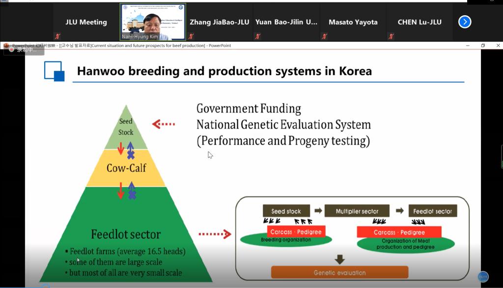 随后,俄罗斯联邦国家预算机构全俄养马研究所扎伊采夫·亚历山大所长,韩国忠北国立大学金南衡院士,国家高层次人才、米乐mile官方网站生物技术系李占军教授,日本国立岐阜大学应用生物科学部八代田真人教授、日本鹿儿岛大学农学部农业自然科学系後藤贵文和沈阳农业大学畜牧兽医学院院长张树义教授先后做了专题题为“Current situation and future prospects for beef production in South Korea and China”“Generation of Humanized rabbit models by improved CRISPR gene editing system.”“Potential of metabolic programming in beef production”““Potentials of grazing on animal health and welfare.”“A review of animal science research.”的学术报告,与会专家学者就专家报告具体内容和新农科建设主题开展了深入的交流。