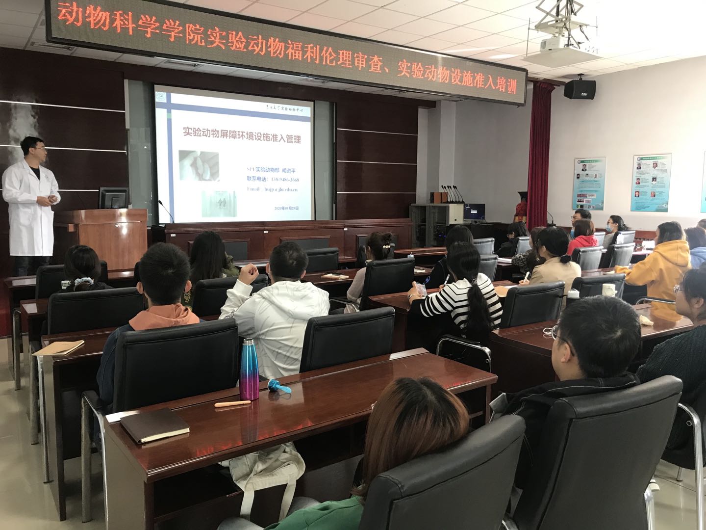 袁宝教授就《米乐mile官方网站实验动物伦理福利审查》进行讲解,对于我校实验动物福利伦理审查中存在的问题进行了深入的分析,对教师和学生如何开展实验动物伦理福利审查,以及如何开展审查等方面,逐条逐项作了详细的说明。陈健老师主要针对《吉林省实验动物管理条例》宣讲,从实验动物生产与使用、检测与检疫、安全管理、监督检查、法律责任等作了详细解读。胡进平老师作了《实验动物屏障环境设施准入培训》的报告,为全院师生在实验动物屏障环境设施的使用过程中人员、物品、动物等进出/传入传出、人员标准化操作规程、实验动物生物安全、设施日常管理与运行等方面,做了细致的讲解和培训。