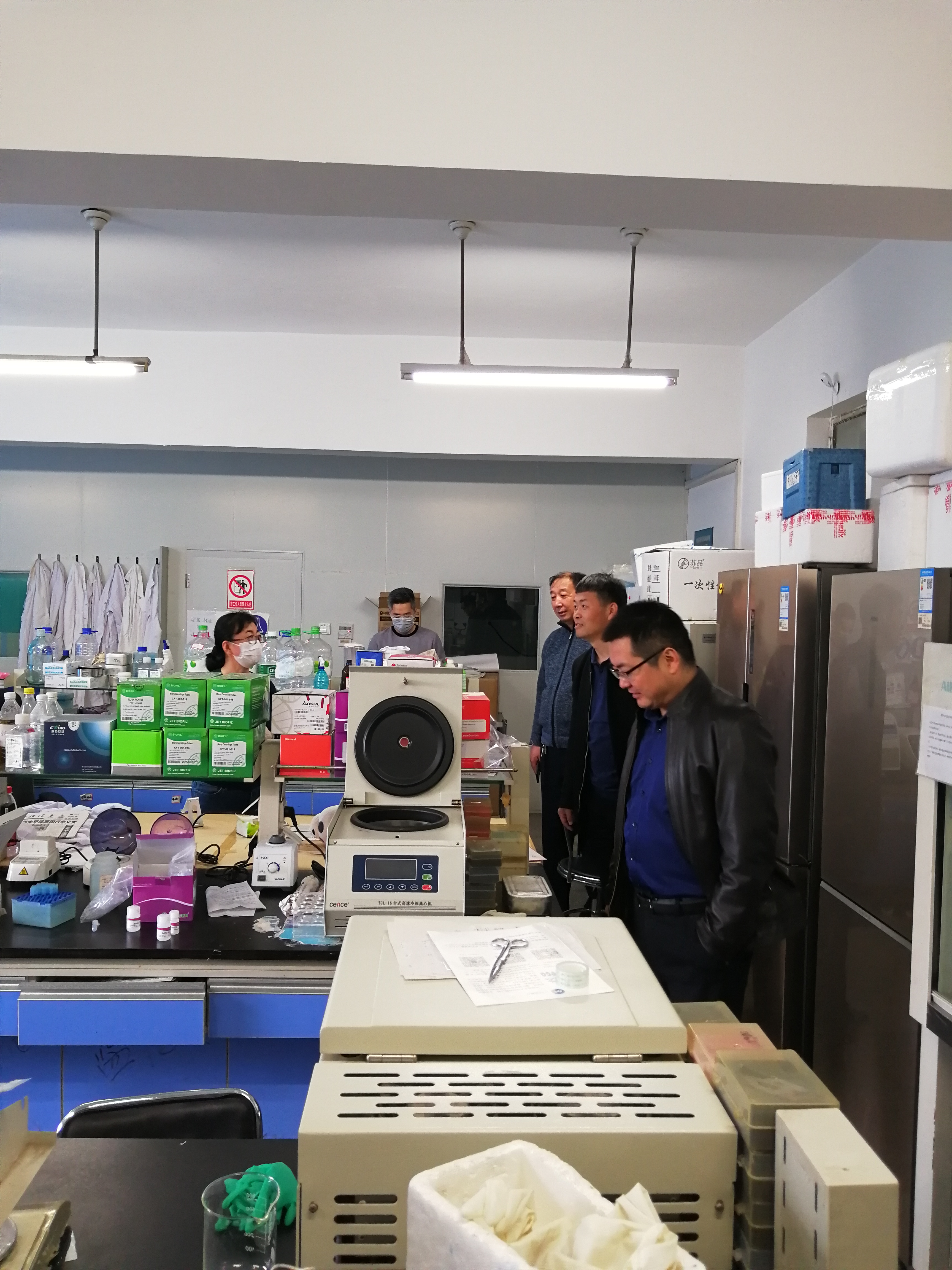 实验室检查主要是对危险化学品的使用及存放、用电安全及仪器设备安全隐患进行了检查,孙博兴院长对检查中发现的安全隐患进行现场办公,协调整改,立查立改,做到零容忍,零盲区,无死角,确保学院安全稳定。