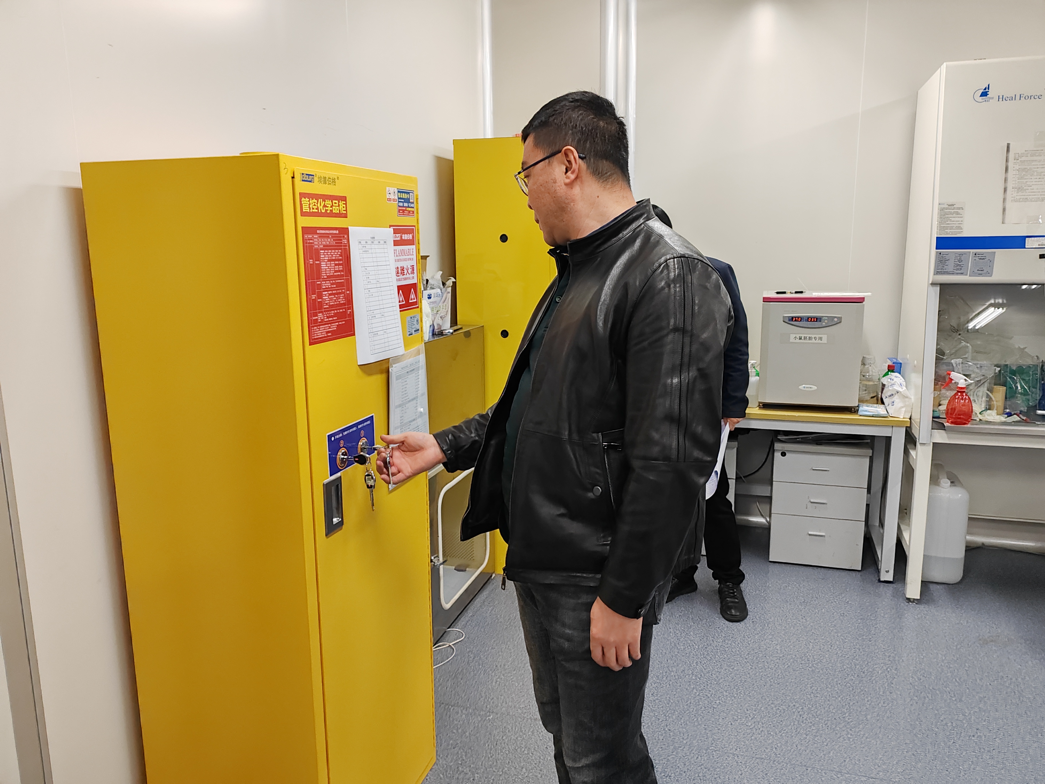 检查组分工组织,高福和书记、孙博兴院长带队,业务副院长、建制实验室负责人主要负责实验室安全方面检查,针对化学药品混存混放、超量储存和大功率高温高压电器无人监管、严格管控易燃易爆、剧毒等危险品,加强实验室改造工程管理,杜绝违规作业、强化从业人员安全教育培训,明确安全责任,落实安全措施等进行全面排查。