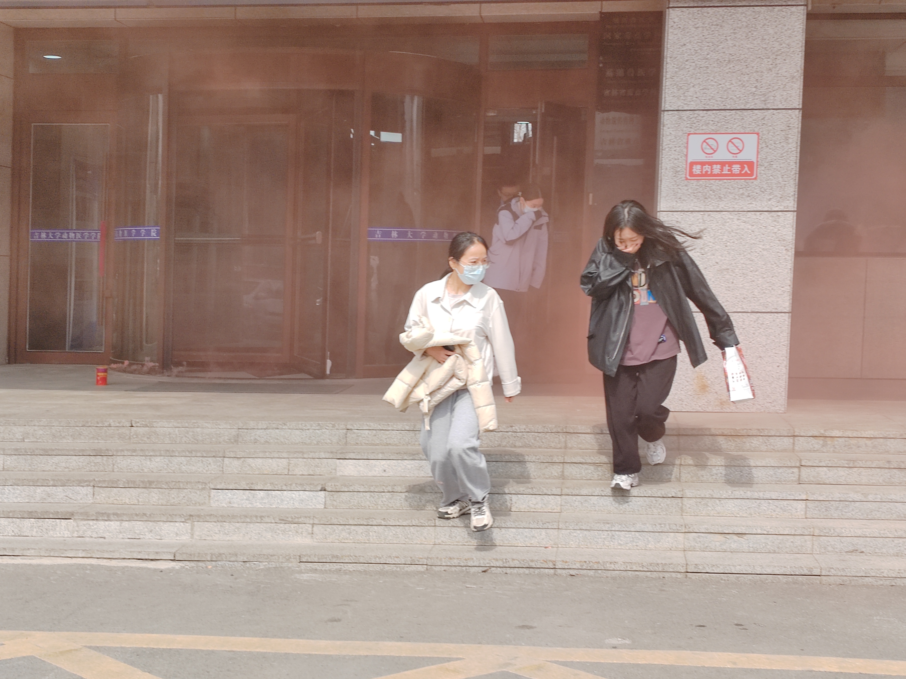 中午十二时,演习正式开始,随着消防报警声的响起,各楼层指挥学生迅速到达指定地点,沉着冷静地指挥学生用湿毛巾捂住口、鼻,尽量放低身体重心,从安全疏散通道紧急撤离。全体师生在指定时间内安全、快速、有序地疏散到了楼前空旷地带。