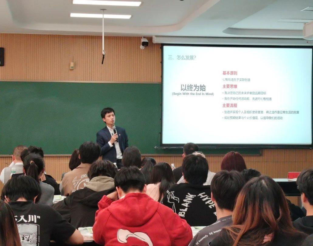 在职业生涯规划环节,中粮家佳康肉制品部总经理助理兼人力资源部总经理张鑫铸以《以始为终,赢在过程》为主题,从“怎么选择、怎么规划、怎么发展”等三方面阐述了职业生涯规划的重要性。他引用大量的实际案例,结合本人多年工作经验,鼓励同学们要了解行业行情,明确大学目标,了解专业对口岗位,积极参加专业实习实践,丰富履历和就业经验。