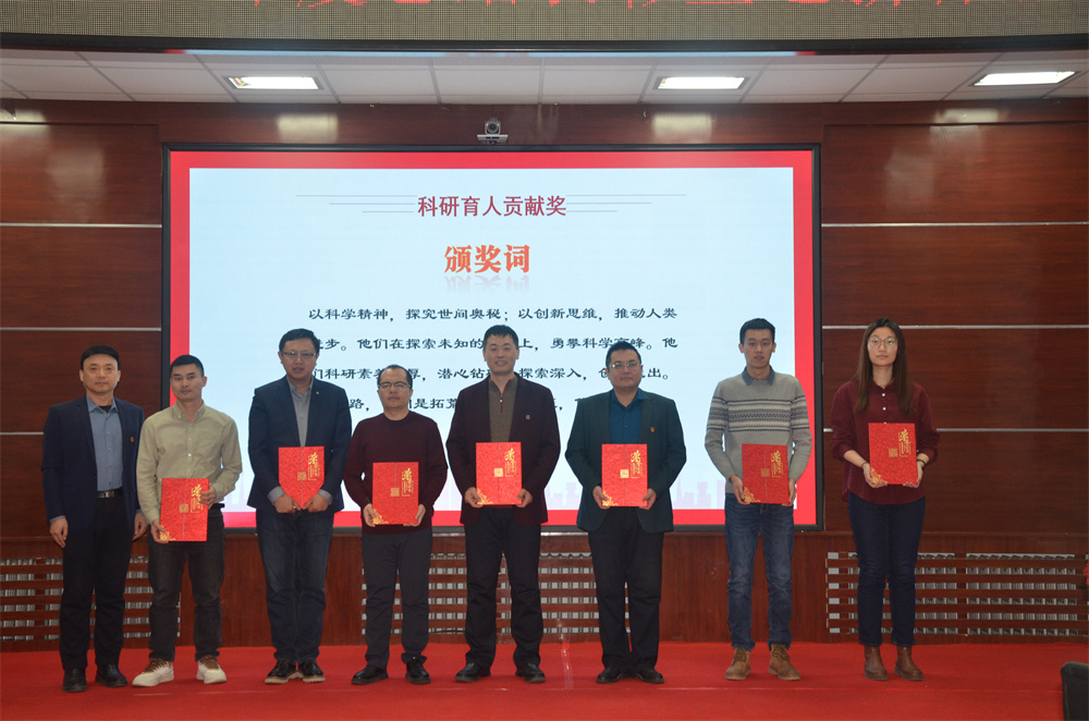 随后进入颁奖环节,主持人胡进平和贾子一宣读获奖团队、个人名单和颁奖词,学院领导分别为获得2024年度学院先进个人、先进单位、优秀学生、教书育人、科研育人,管理服务育人贡献奖的团队和个人颁奖并合影留念。