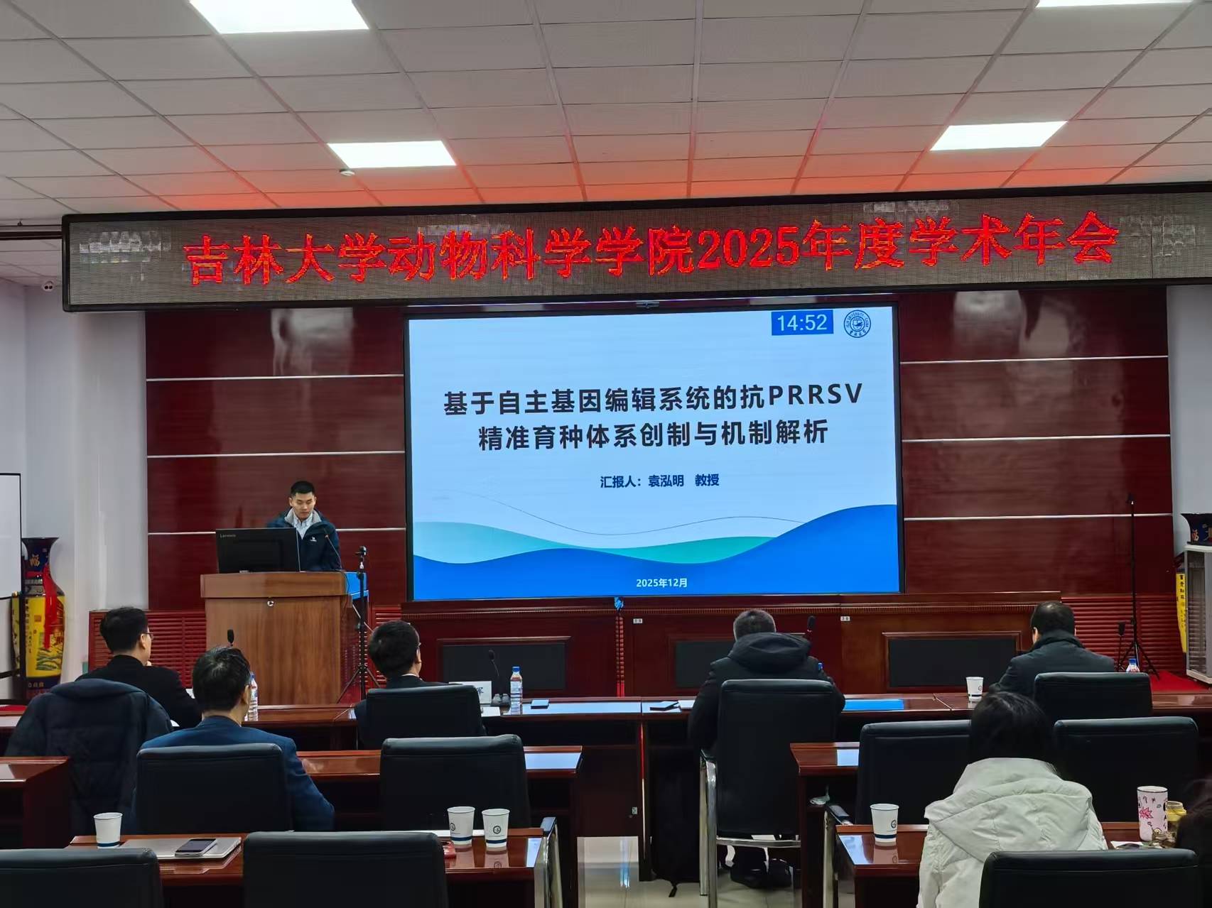 2025年12月29日,米乐mile官方网站在学院一楼会议室高质量举办2025年度学术年会。学院青年教师代表、新引进教师和在站博士后袁泓明、陈佳欢、别路垚、黄炳旭、郑毅、江秋雨、张绍萱、郝杨、王佳琪、尚丽君、张哲、钱育强、邵陶祺、曲赫选等14位教师分别在学术年会上作研究报告。年会分别邀请国家高层次人才、中国农业大学动物科技学院院长王军军教授、华中农业大学李新云教授、华南农业大学赵江潮教授、浙江大学熊波教授、南京农业大学陈彦廷教授、吉林农业大学车东升教授担任评委和点评专家。年会由米乐mile官方网站副院长袁宝教授主持。米乐mile官方网站院长孙博兴教授、副院长李纯锦教授、副院长逄大欣教授、各系主任及师生60多人参加了年会。