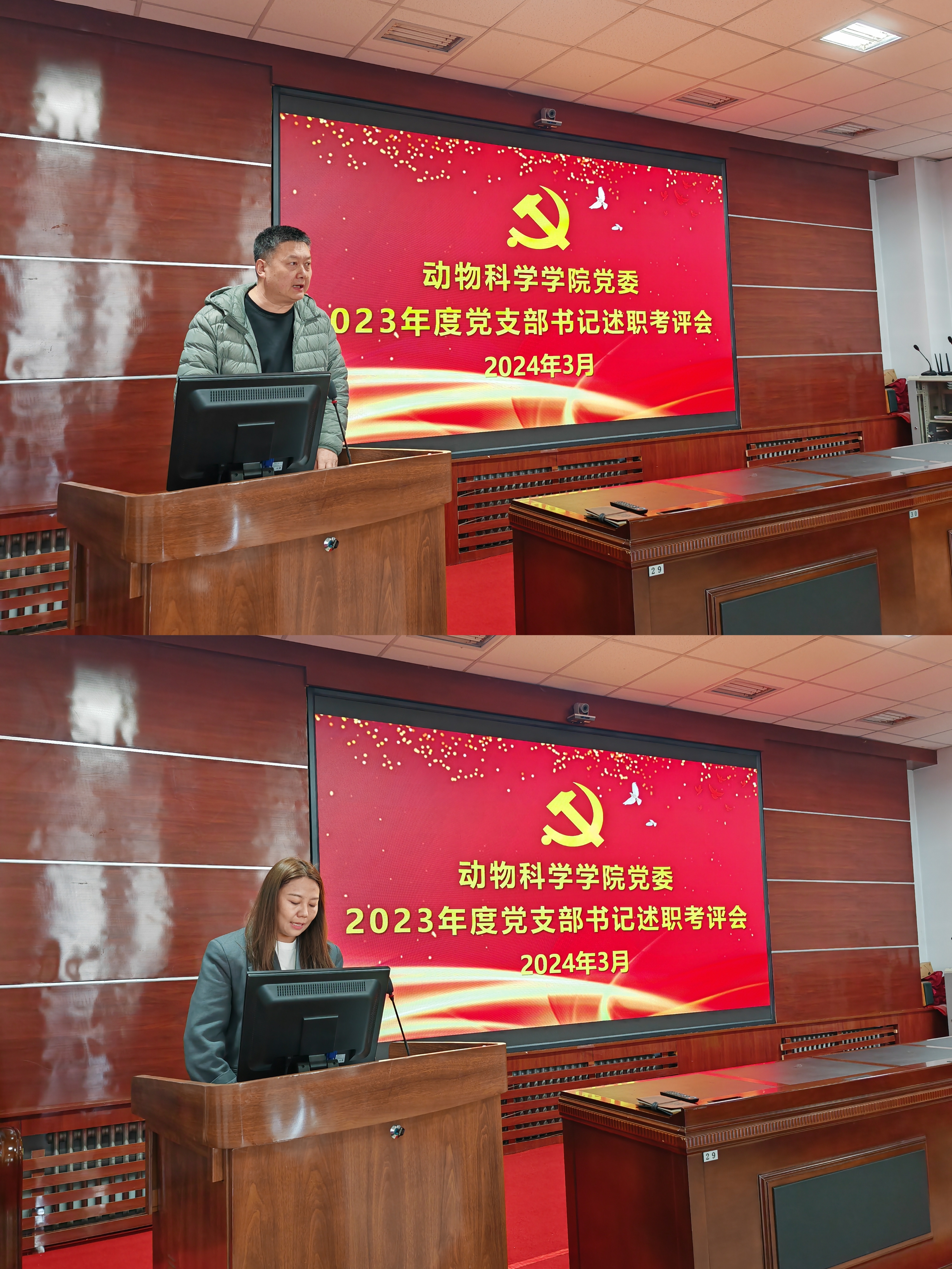 述职结束后,学院党建联络员籍海春老师发表了点评讲话。籍老师概括了参加学院此次会议的整体感受,一是党委高度重视,党建主体责任落实到位。学院党委按照五个到位和基层党支部七个有利建设标准,实现了党建工作与教育教学工作同频共振,互相促进。二是党支部的基础建设得到了进一步加强。“三会一课”等组织生活制度得到了很好的落实,党支部的战斗堡垒作用和党员模范作用发挥比较明显。三是抓党建促业务的机制氛围已经形成,基本实现了党建与业务的良性互动和相互促进。四是支部活动丰富多样,党支部的凝聚力向心力进一步提高。籍老师表示,开展基层党支部书记述职评议既是落实全面从严治党要求的重要举措,也是对各基层党支部书记落实党管治党第一责任情况的一次集中展示和检阅,希望学院各级党组织进一步增强“四个意识”,树牢“四个自信”,做到“两个维护”,持续巩固和深化习近平新时代中国特色社会主义主题教育成果成效,不断增强党内政治生活的政治性、时代性、原则性和战斗性,让党的旗帜在学院教学科研各领域和师生党员心中高高飘扬。