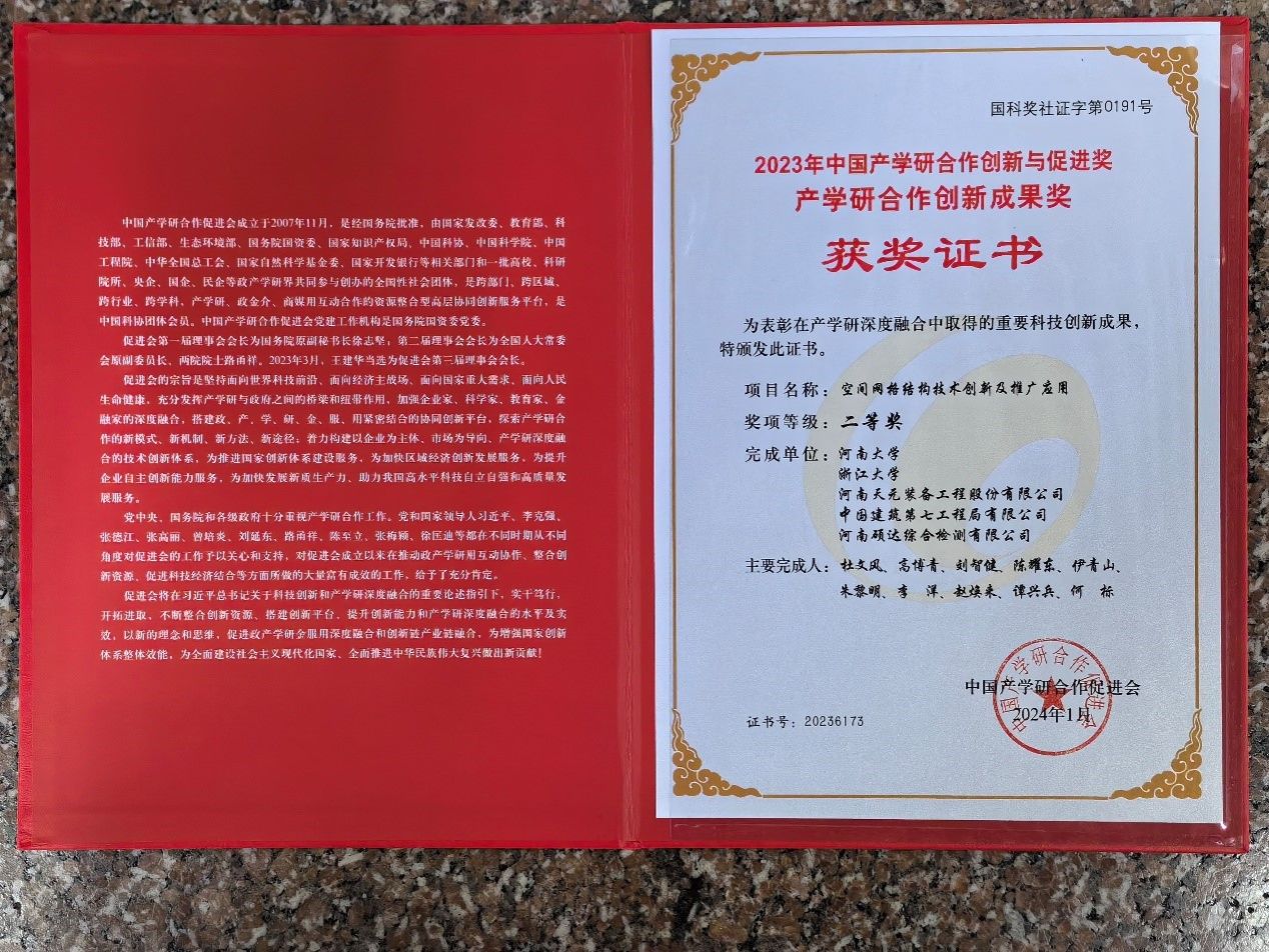 2024年3月16日,第十五届中国产学研合作创新大会在北京举行。土木建筑学院杜文风教授作为第一完成人牵头申报的“空间网格结构技术创新及推广应用”获2023年中国产学研合作创新成果奖二等奖。