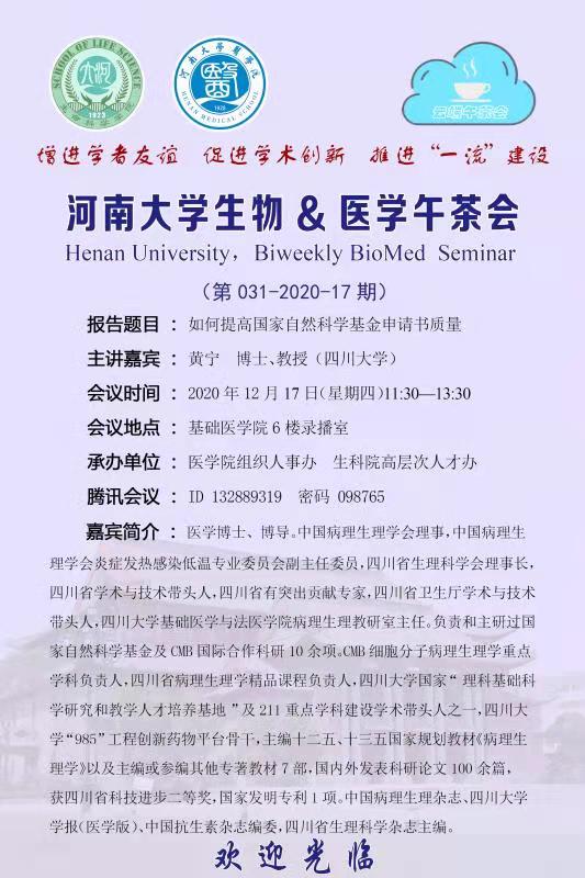 黄宁:如何提高国家自然科学基金申请书质量(时间12.17)