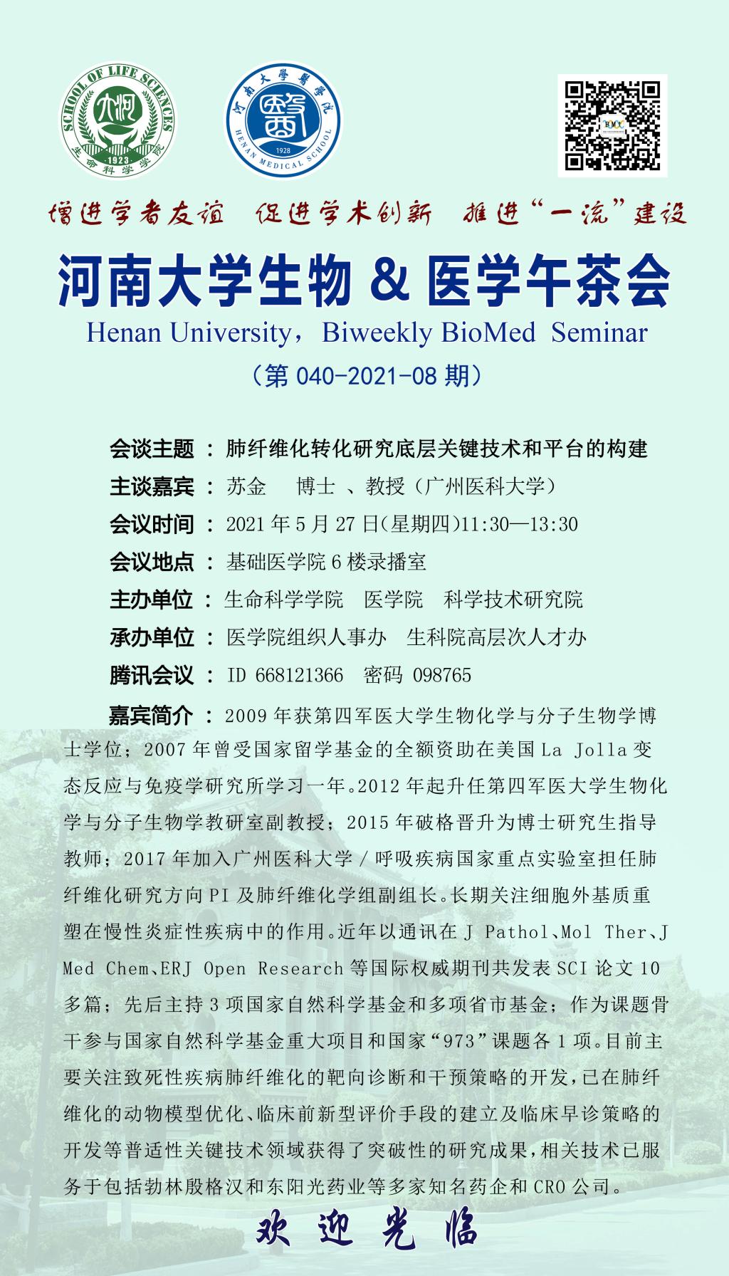 yl7703永利官网生物&医学午茶会:肺纤维化转化研究底层关键技术和平台的构建(时间5.27)