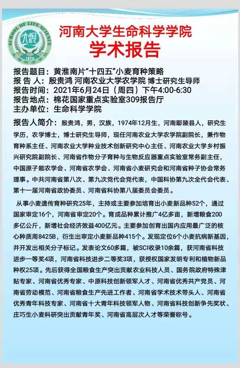 殷贵鸿:黄淮南片“十四五”小麦育种策略(时间6.24)