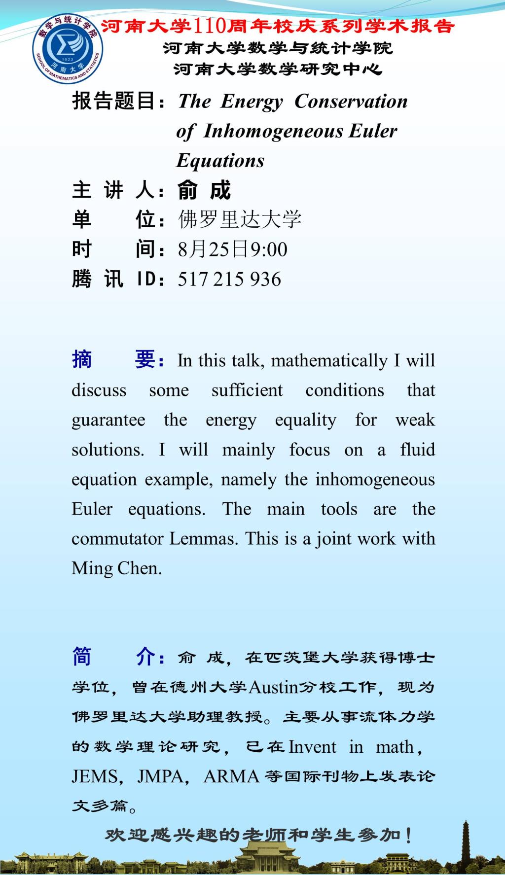 网络报告:The Energy Conservation of Inhomogeneous Euler Equations(时间8.25)