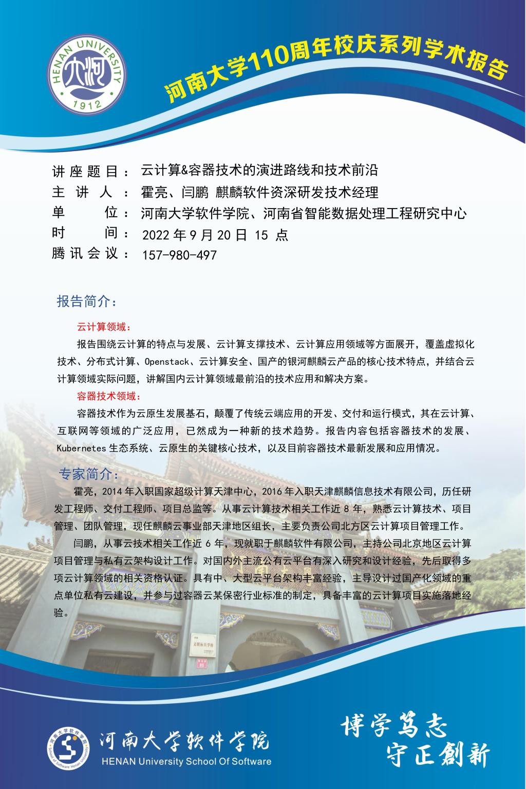 yl7703永利官网110周年校庆系列学术报告:云计算&容器技术的演进路线和技术前沿(9月20日)