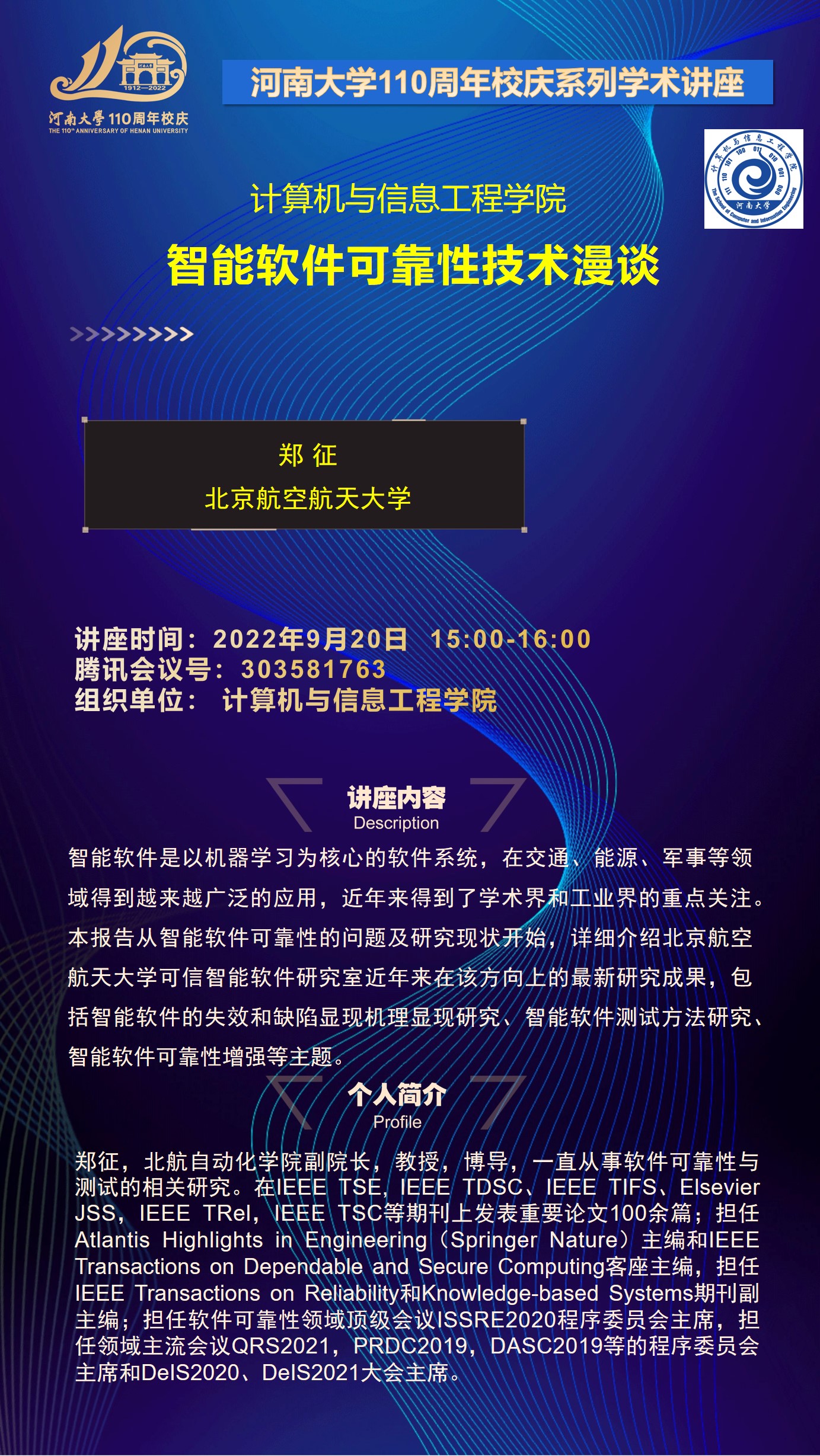 110周年校庆学术活动:智能软件可靠性技术漫谈(时间9.20)