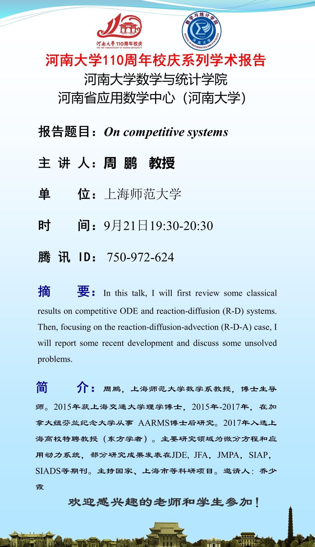 110周年校庆学术活动:周鹏:On competitive systems(时间 9.21)