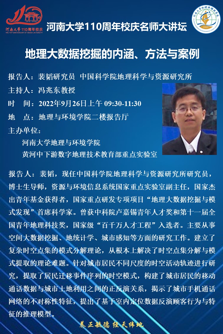 校庆学术活动:裴韬:地理大数据挖掘的内涵、方法与案例(时间9.26)