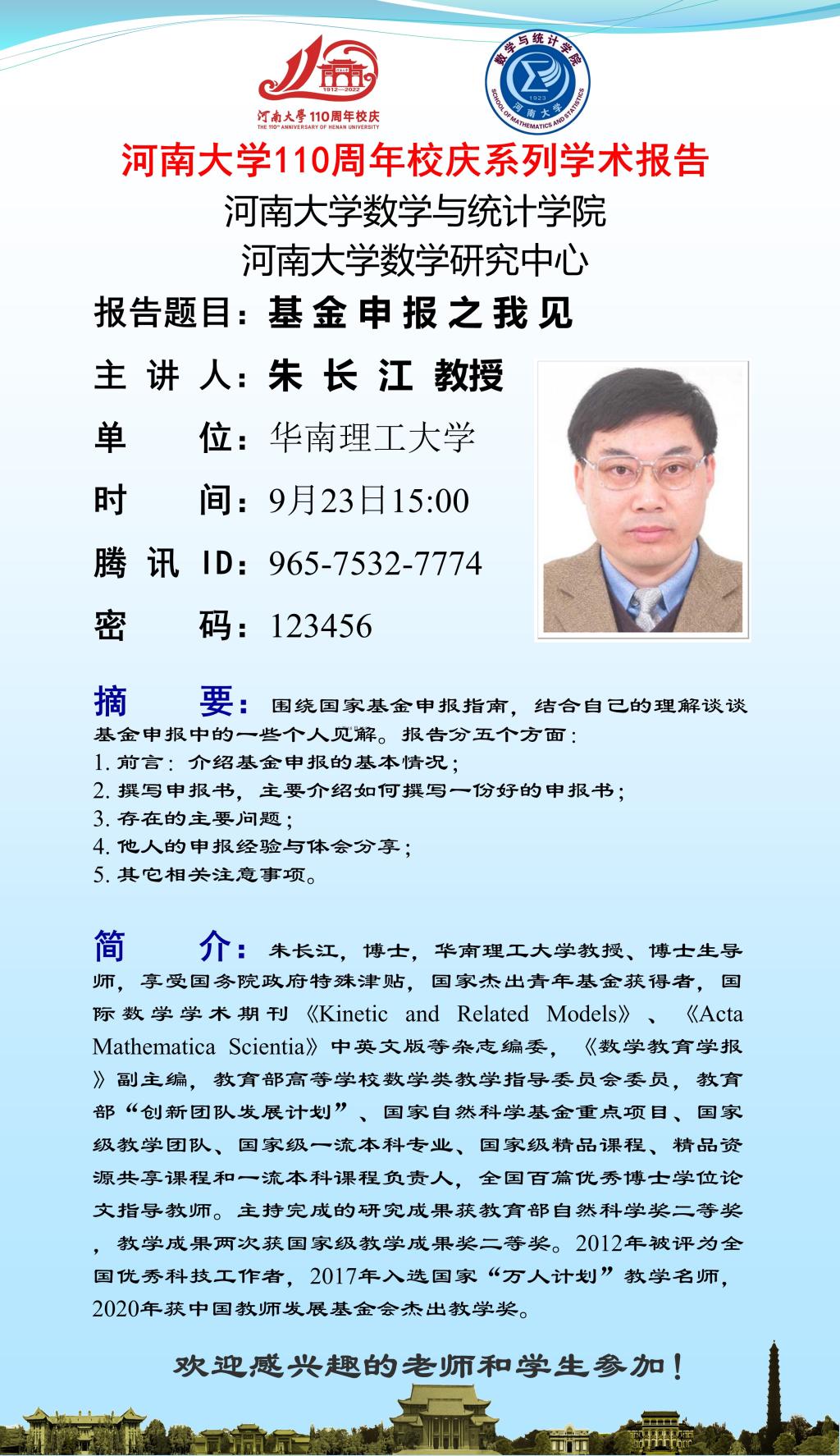校庆学术活动:朱长江:基金申报之我见(时间9.23)