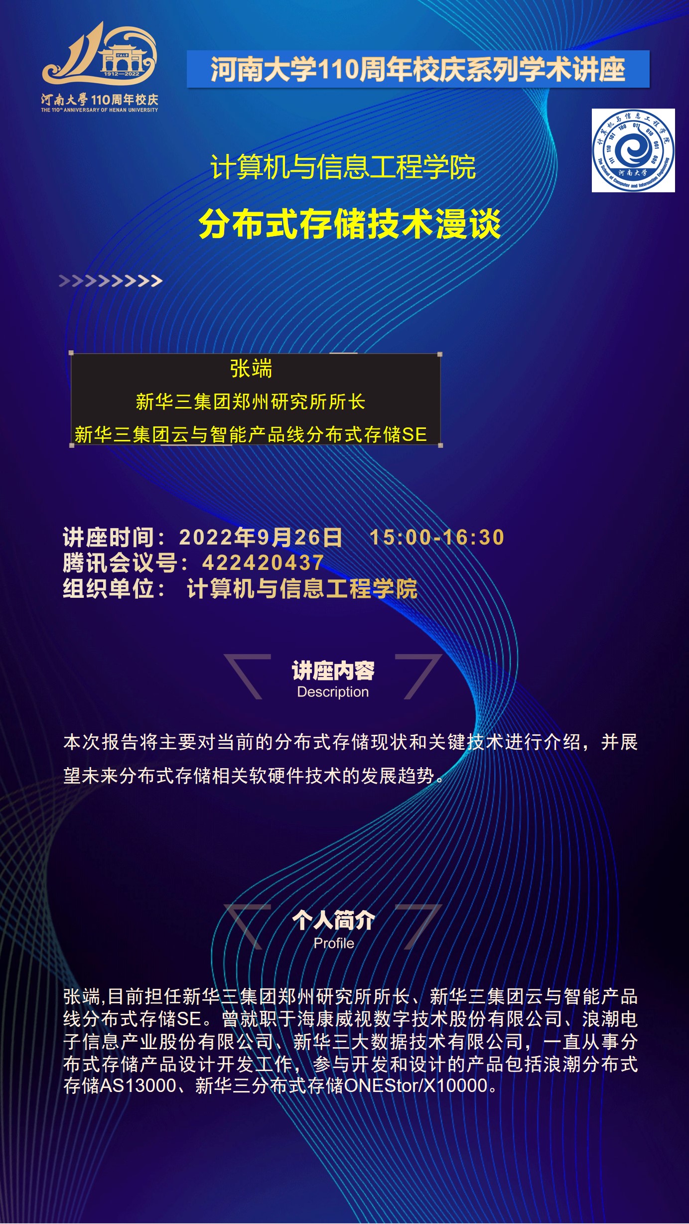 校庆学术活动:张端:分布式存储技术漫谈(时间9.26)
