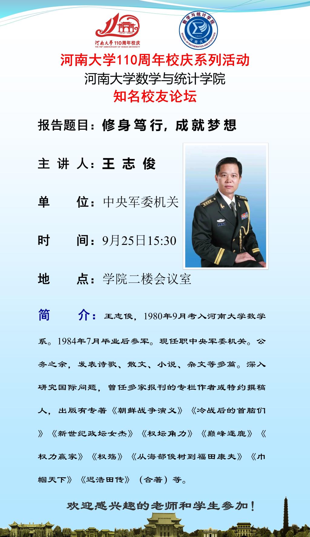 校友论坛:王志俊:修身笃行 成就梦想(时间9.25)