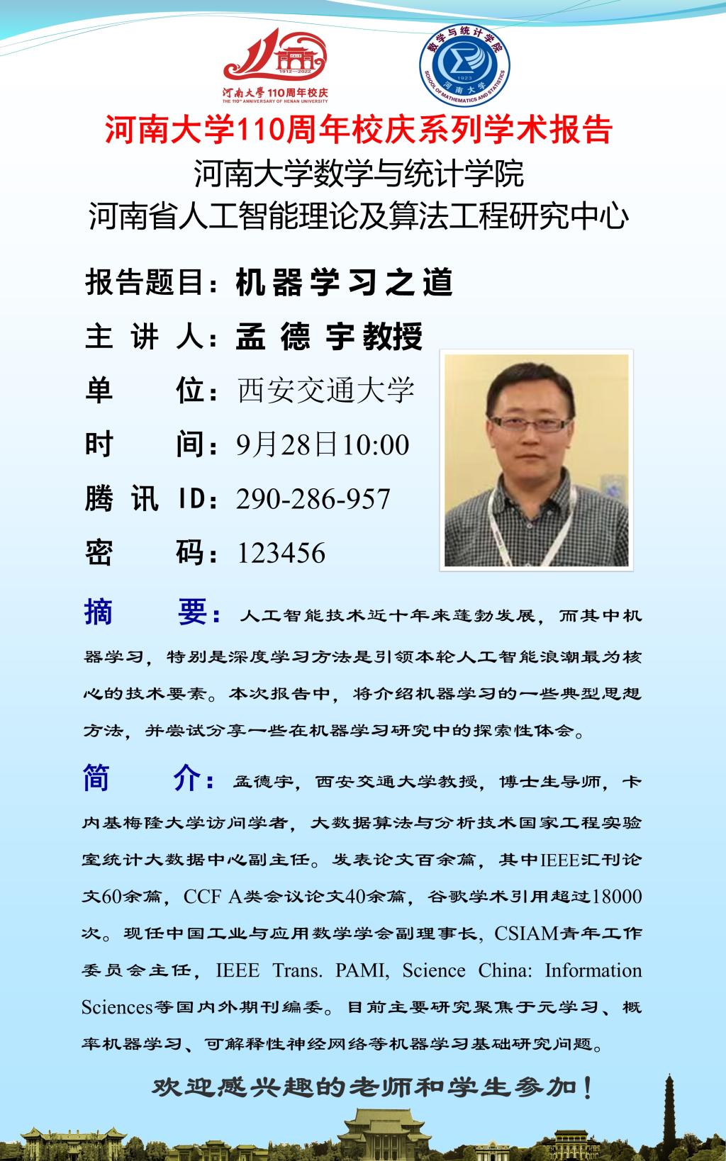 校庆学术活动:孟德宇:机器学习之道(时间9.28)