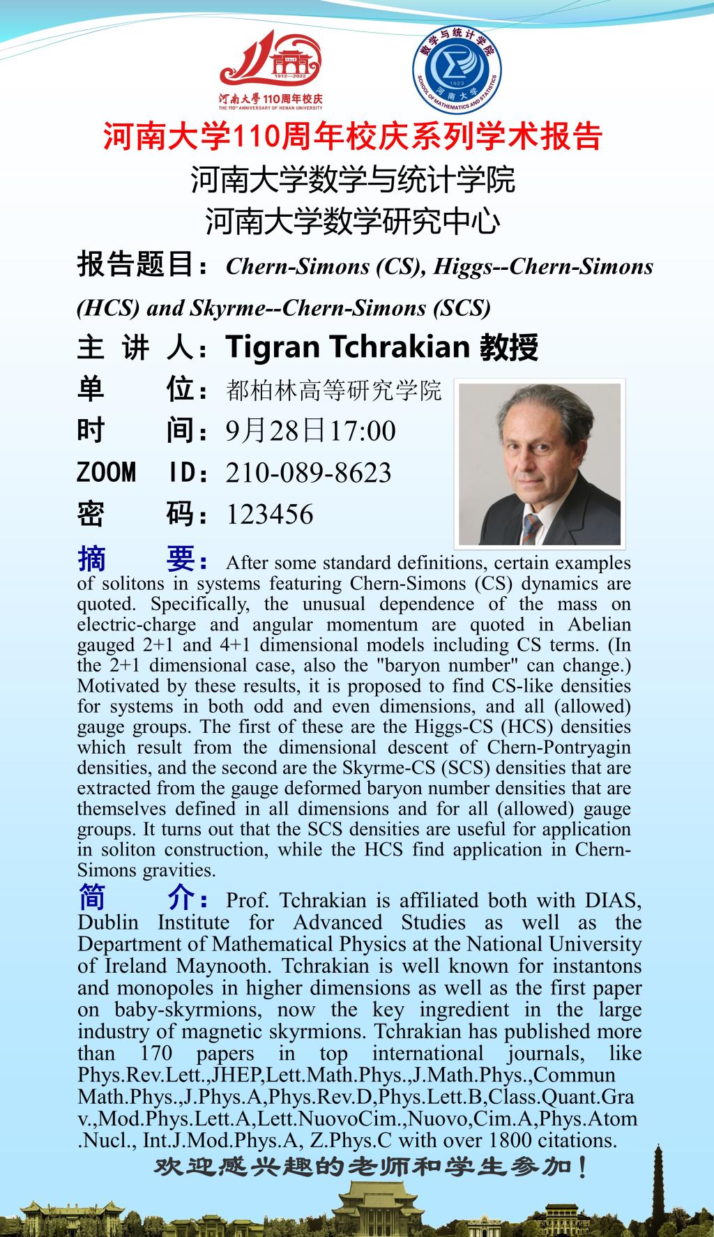 校庆学术活动:Chern-Simons(CS),Higgs-Chern-Simons(HCS) and Skyrme-Chern-Simons(SCS)(时间9.28)