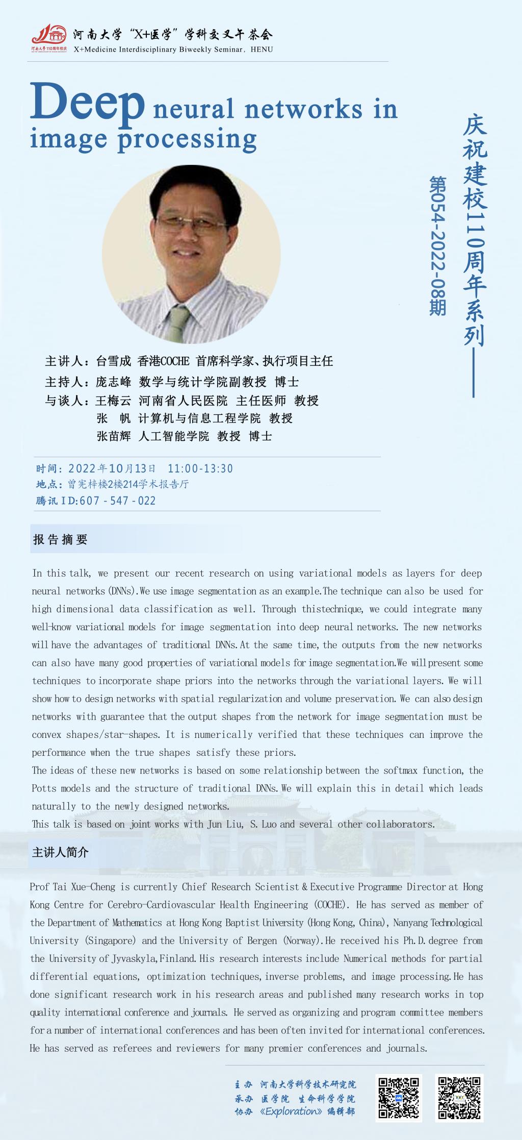 校庆学术活动:X+MIBS|台雪成:Deep neural networks in image processing(10.13)