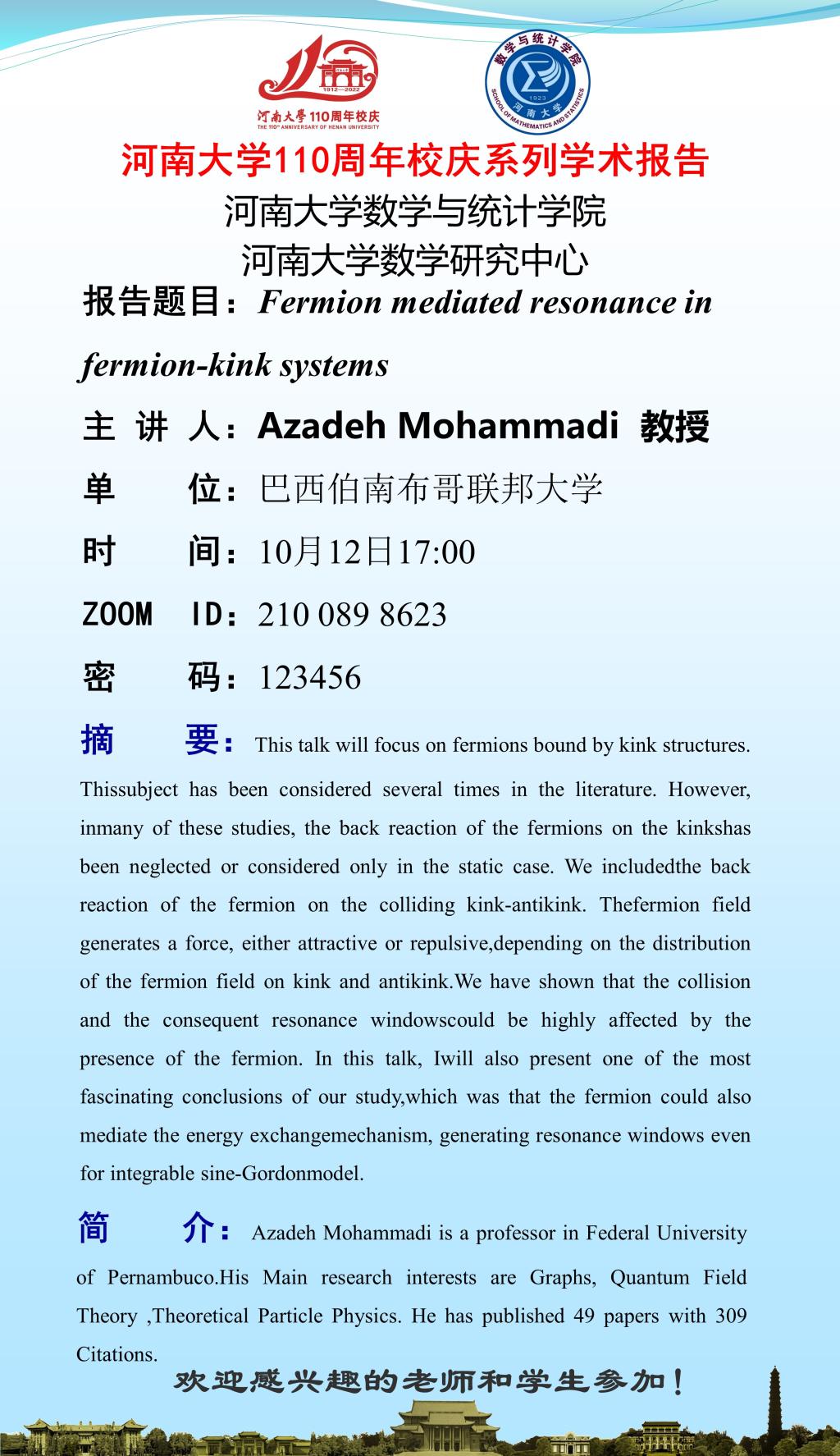 Azadeh Mohammadi:Fermion mediated resonance in fermion-kink systems(10.12)