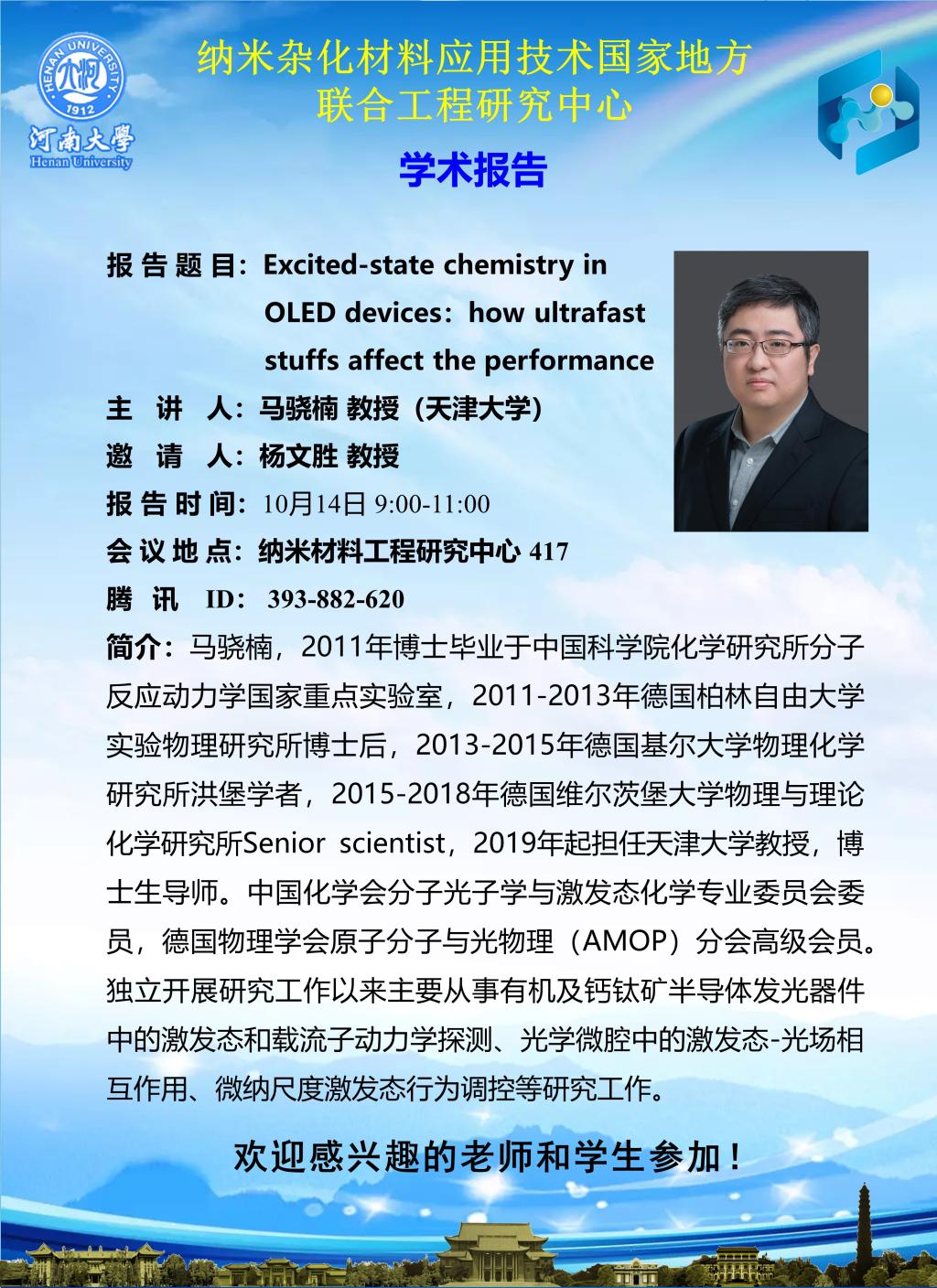 马骁楠:Excited-state chemistry in OLED devices: how ultrafast stuffs affect the performance(10.14)