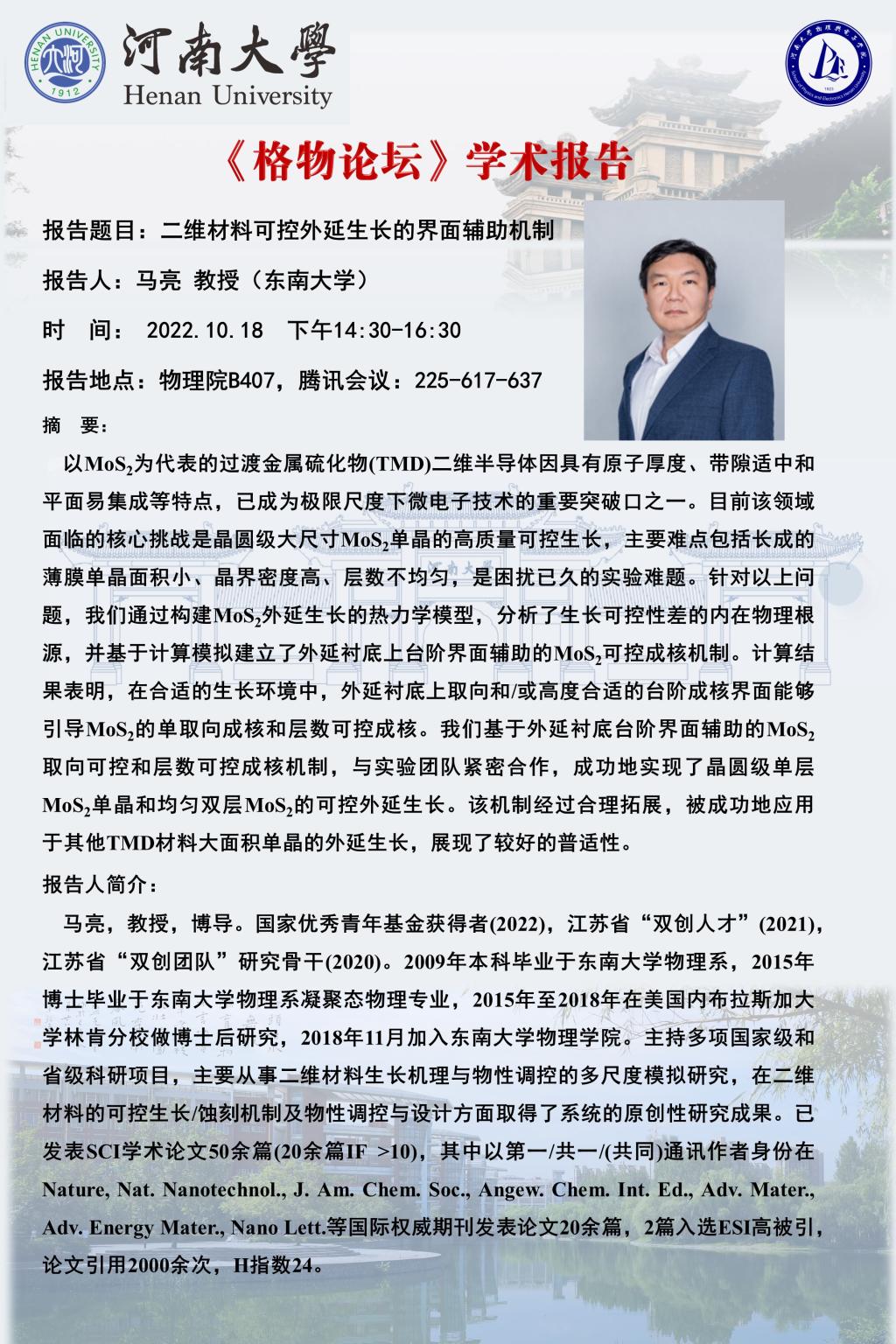 马亮:二维材料可控外延生长的界面辅助机制(10.18)