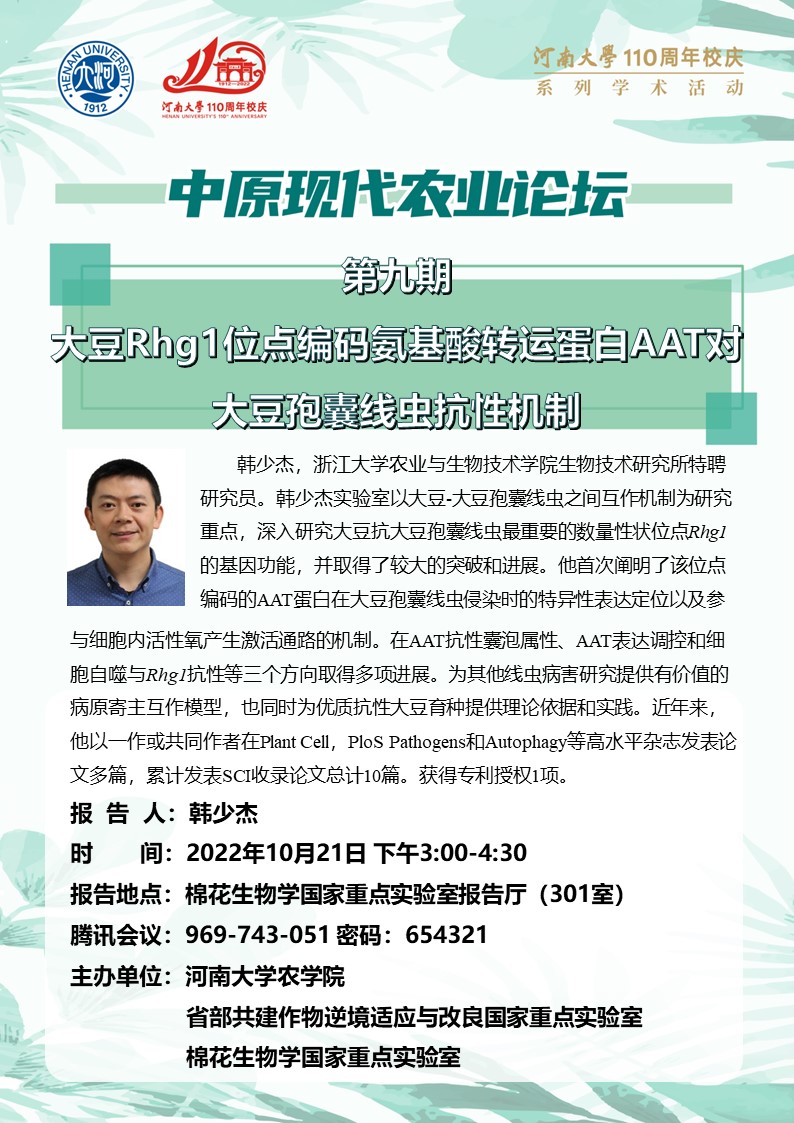 韩少杰:大豆Rhg1位点编码氨基酸转运蛋白AAT对大豆孢囊线虫抗性机制(10.21)