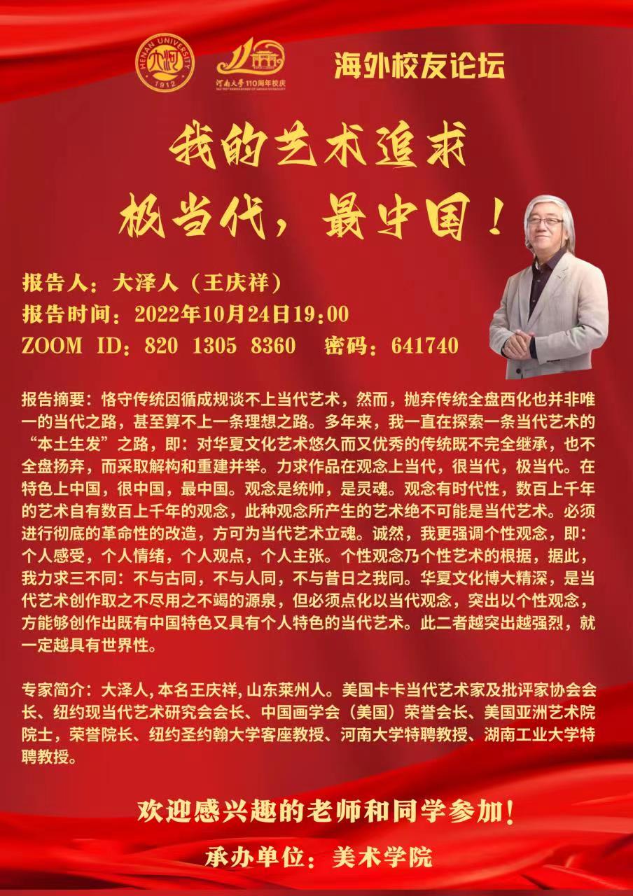 110周年校庆海外校友论坛:王庆祥:我的艺术追求:极当代,最中国(时间10.24)
