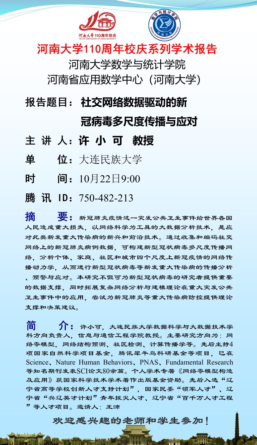许小可:社交网络数据驱动的新冠病毒多尺度传播与应对(10.22)