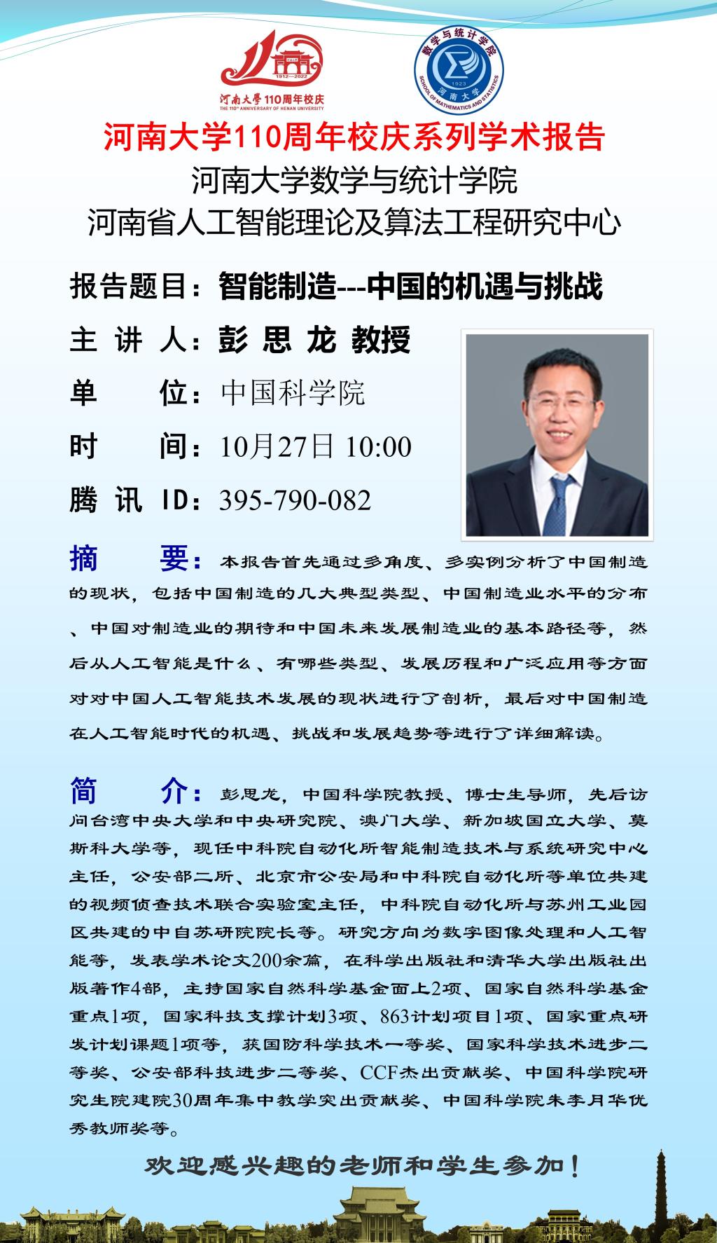 彭思龙:智能制造--中国的机遇与挑战(时间10.27)