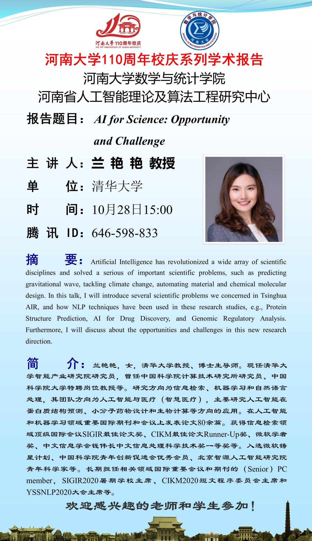 兰艳艳:AI for Science:Opportunity and Challenge(时间10.26)