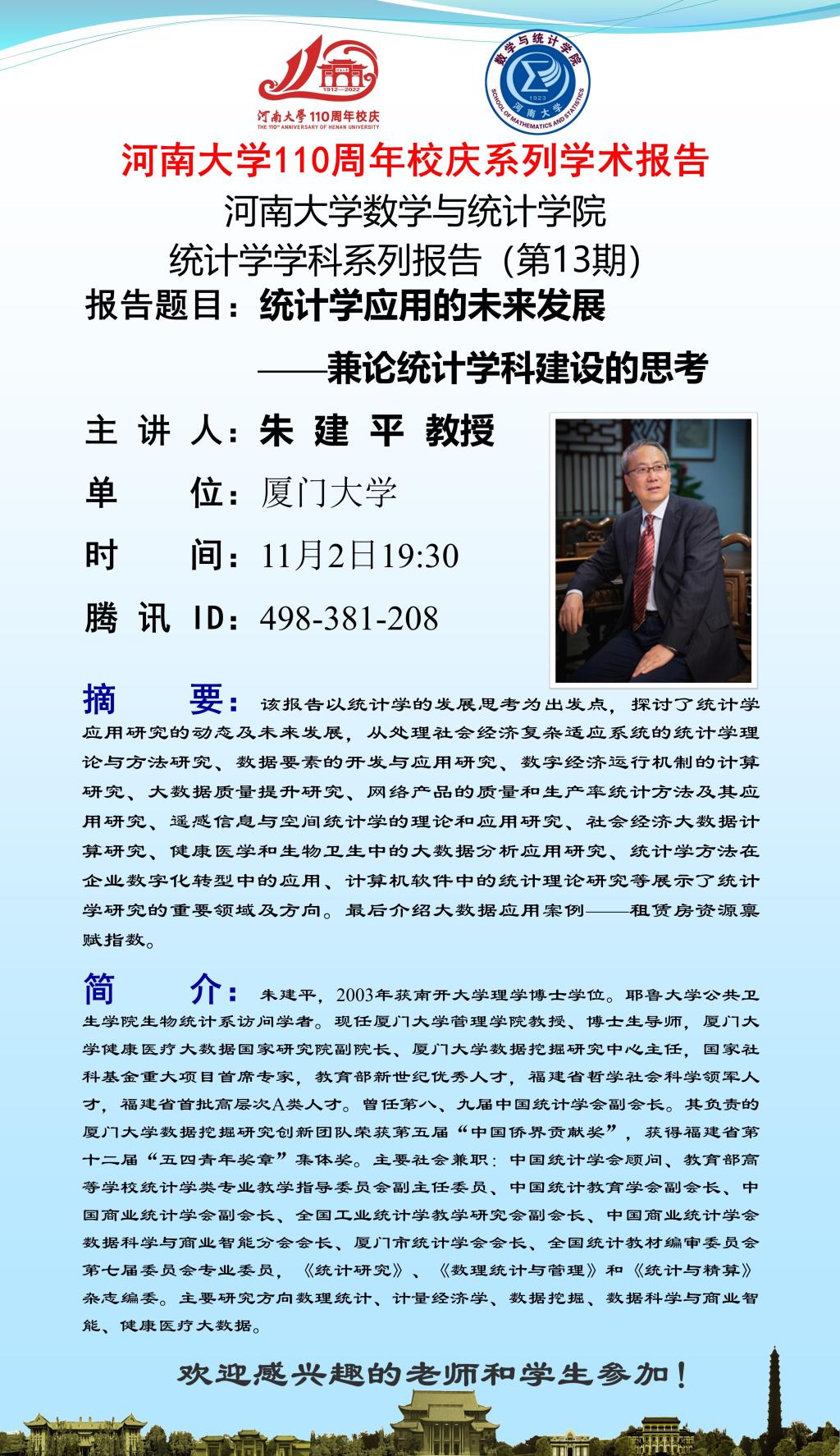 朱建平:统计学应用的未来发展--兼论统计学科建设的思考(时间11.2)