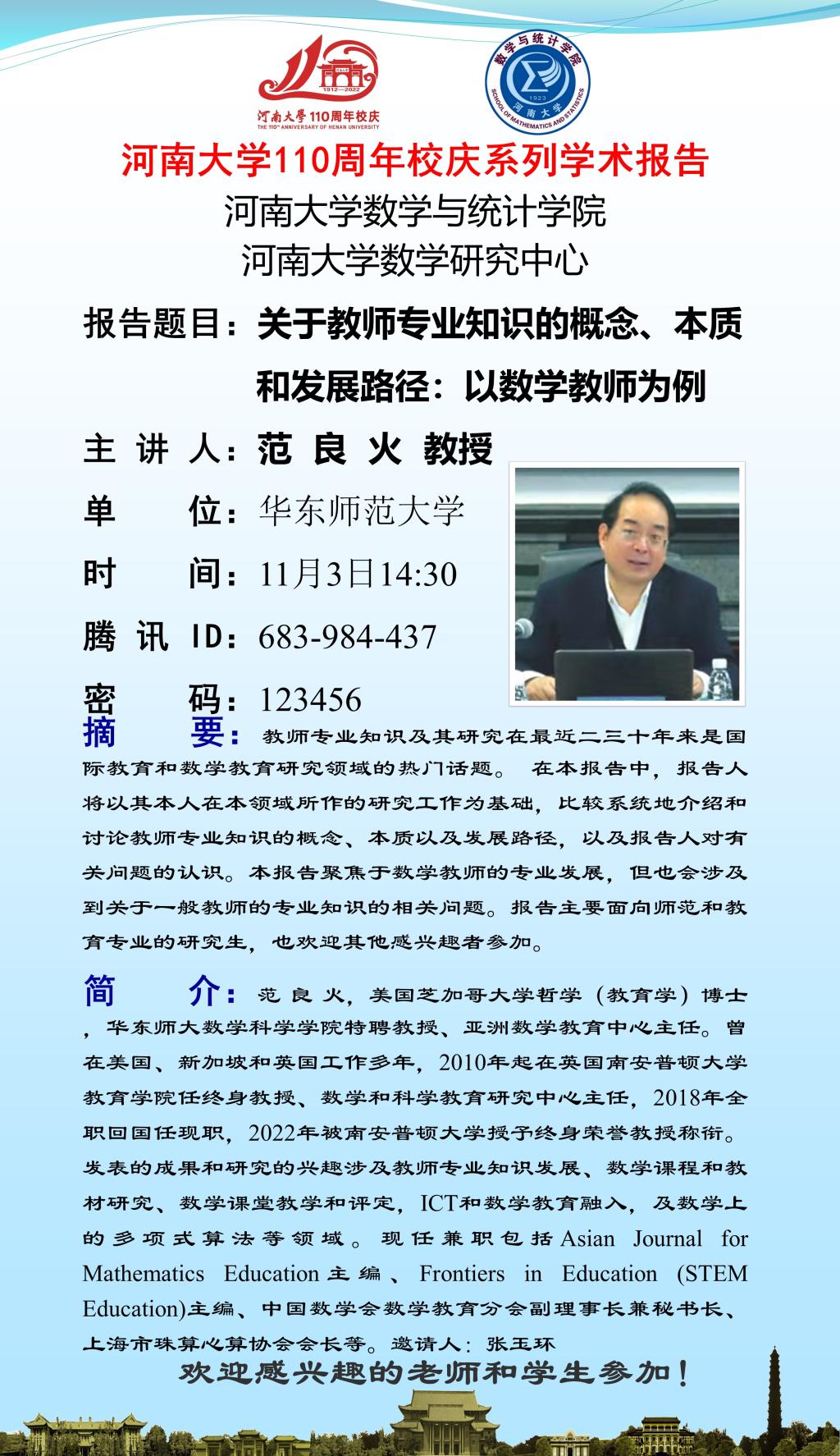 范良火:关于教师专业知识的概念、本质和发展路径:以数学教师为例(时间11.3)