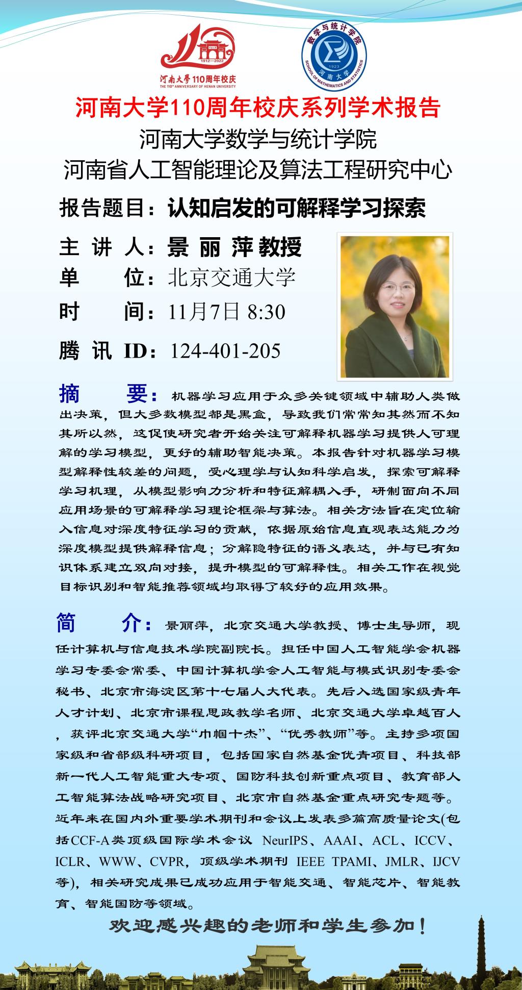 景丽萍:认知启发的可解释学习探索(时间11.7)