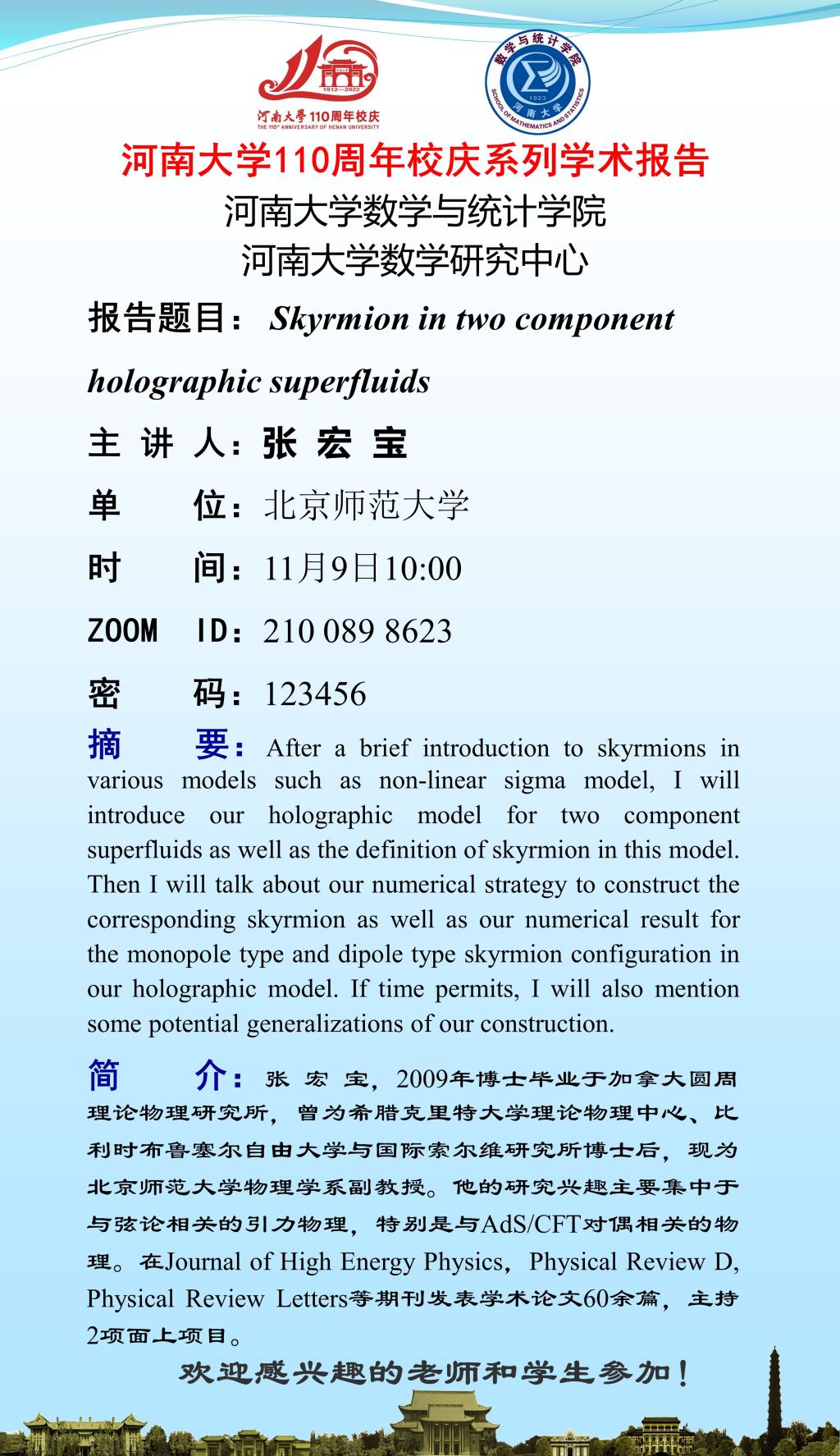 张宏宝:Skyrmion in two component holographic superfluids(时间11.9)