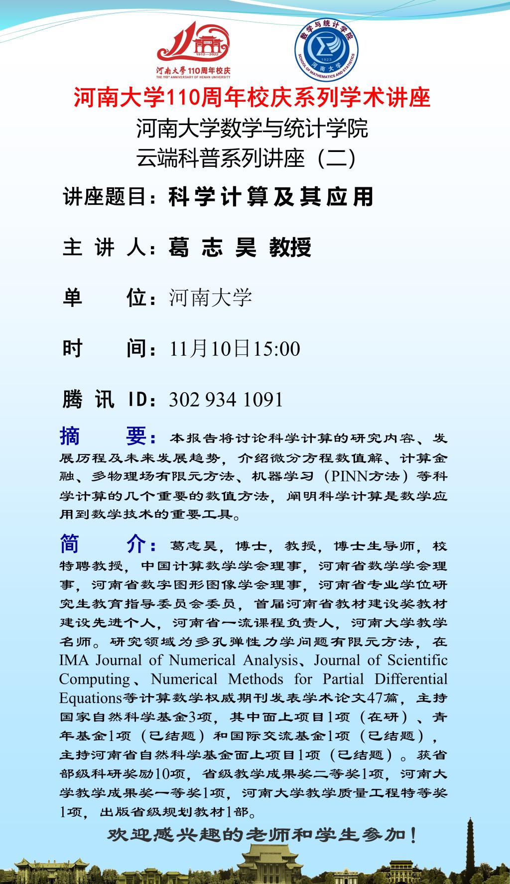 葛志昊教授:云端科普系列讲座(二):科学计算及其应用(时间:11.10)