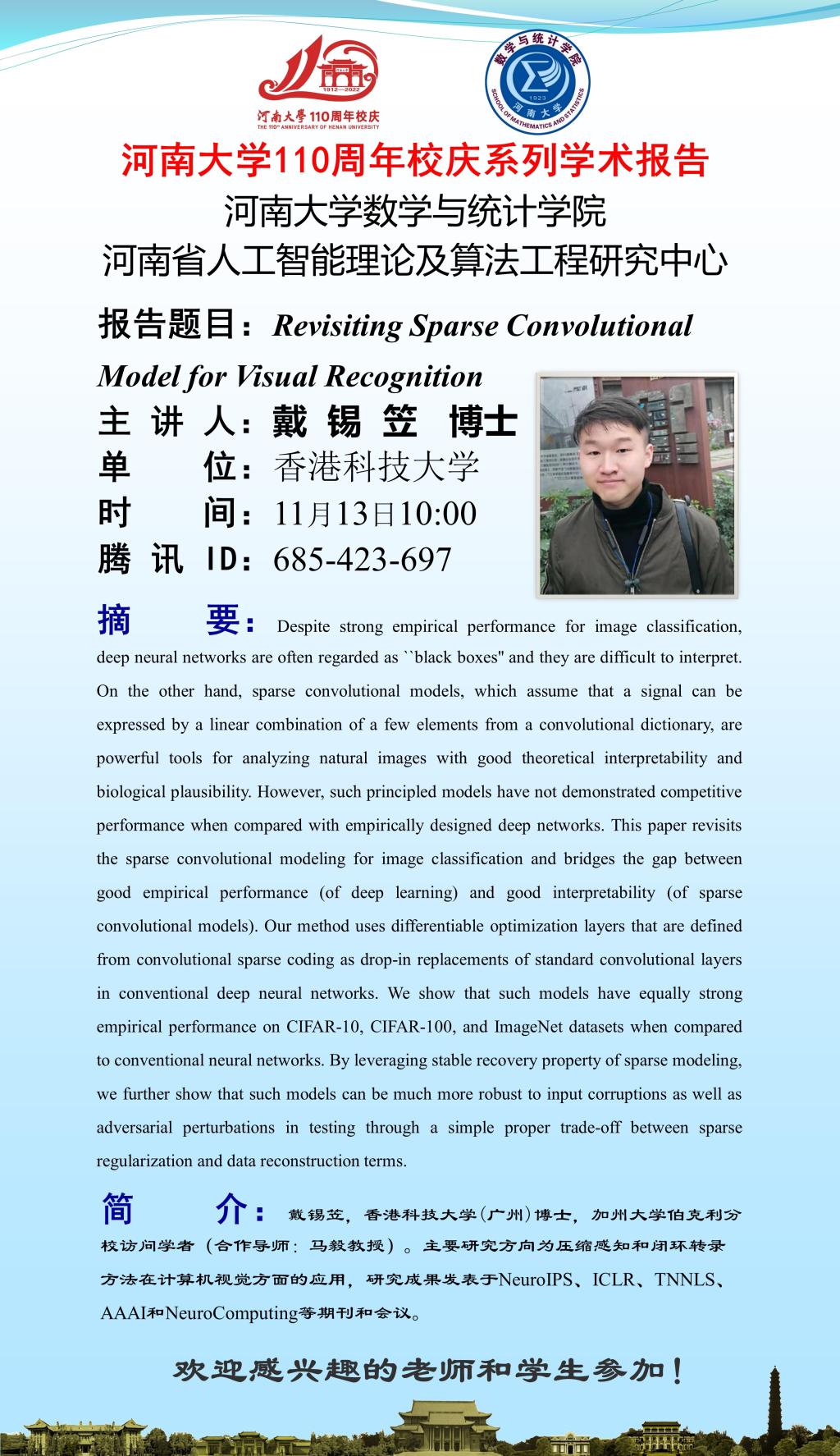 戴锡笠:Revisiting Sparse Convolutional Model for Visual Recognition(时间:11.13)