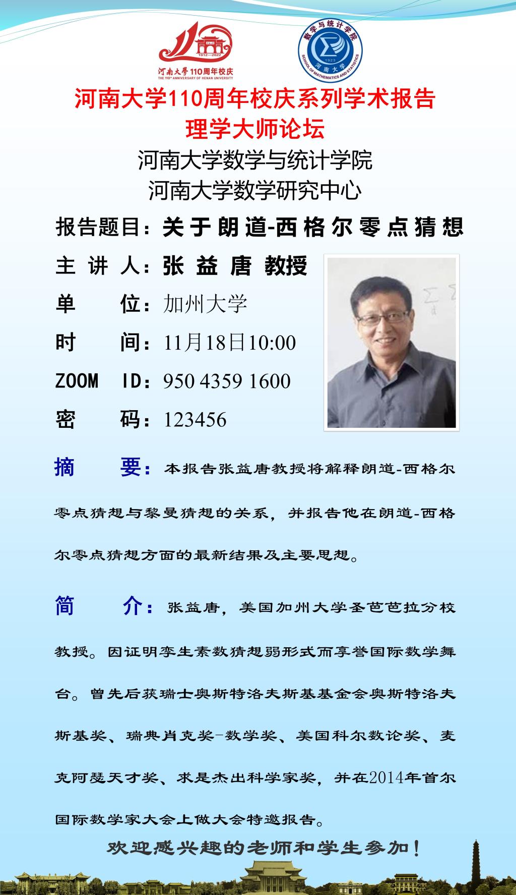 张益唐:关于朗道-西格尔零点猜想(时间:11.18)